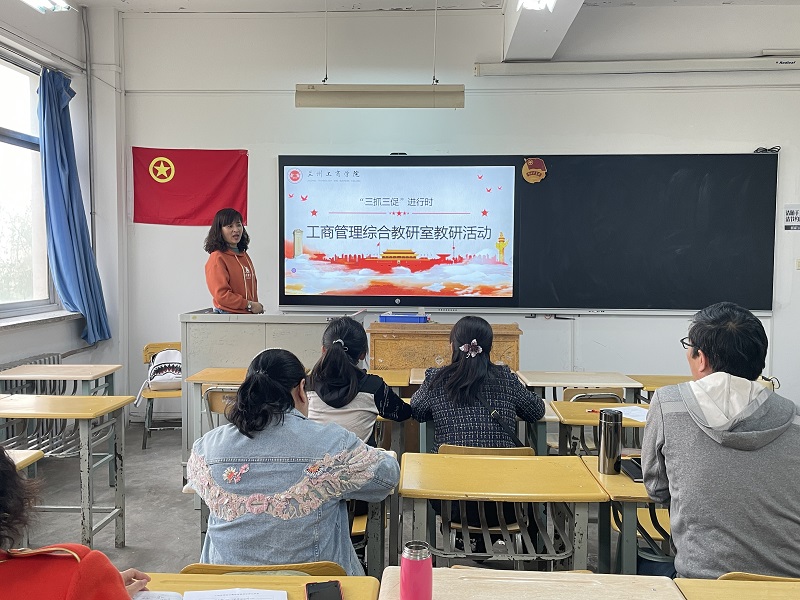 以研促教,教研相长。为切实提升教师教学素养,提高课程教学质量、教研室课程建设能力,民商经济法教研室开展了《民法学》一流课程申报内容研讨活动,相关课程负责人分享了校级一流课程申报情况,教研室成员针对一流课程的申报、线上线下教学模式展开讨论。财政与保险教研室在主题研讨活动中结合财政学一流专业建设,进一步强化课程思政建设,深入挖掘课程思政元素,增强育人实效,教研室成员认为,要提高教改、课改的工作深度,并结合课程内容创新授课模式,尝试进行课程内容的知识重构,形成适用于应用型本科教育实践的课程内容,通过课程改革和教学方法改革助推财政学一流专业建设。旅游与物流管理教研室在教研室活动中研讨将《物流系统规划与设计》的考核改革为“赛考结合”,注重对学生实践能力的考核,调动学生学习的参与性和积极性。工商管理综合教研室开展《市场营销学》《市场营销策划》等一流课程及市场营销、工商管理一流专业建设研讨会,总结工作进度,梳理存在的重难点问题,研讨提出建设意见。法学综合教研室结合一流课程建设,重点优化重构教学内容与体系,一方面,加强课程质量的监控,严格执行课程准入制度,严格课程质量评估,严把考核关;另一方面,加强对学生的课堂内外、线上线下学习内容的过程性考核评价,强化阅读量和阅读能力考查,提升课程学习的广度和深度。投资与信用管理教研室在《证券投资学》课程投资分析的技术分析教学中,教师将证券市场实际交易图形作为教学案例,把媒体动画作为辅助教学手段,不仅使学生对知识的理解更加直观,也使学生学习过程更具趣味性,针对证券投资技术分析中的教学重点、要点和常见问题,教研室讨论从理论→案例→动画演示→课堂实践,到竞赛实践的螺旋上升教学法,教师讲授与学生实验室模拟实验相结合的教学方法,强化了学生对知识基础的理解。