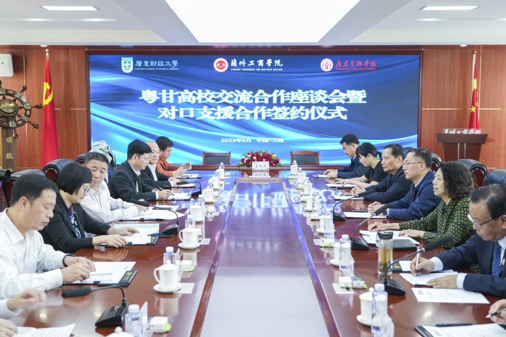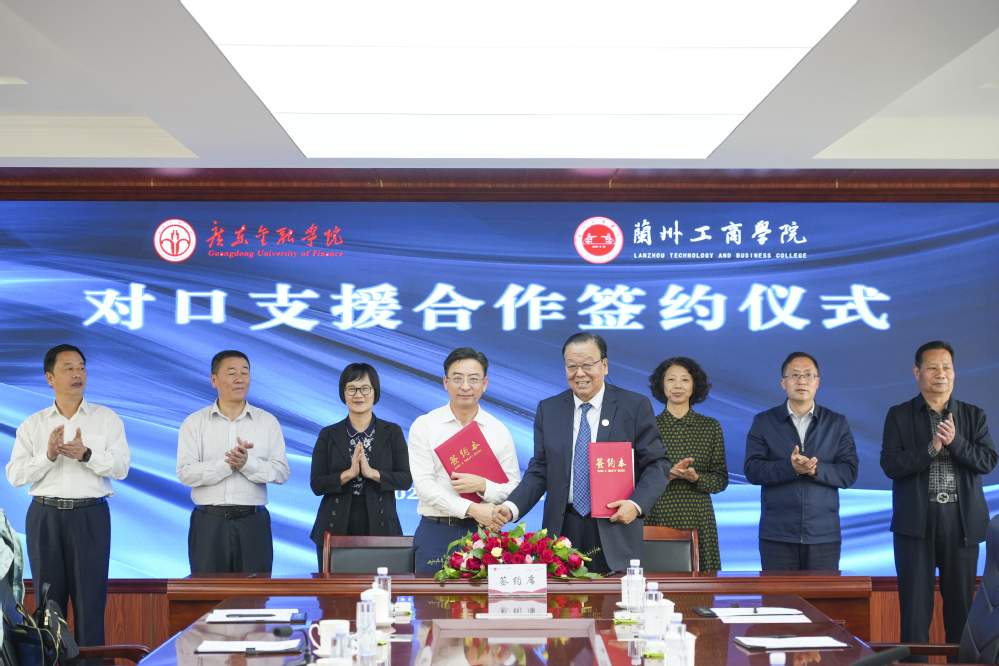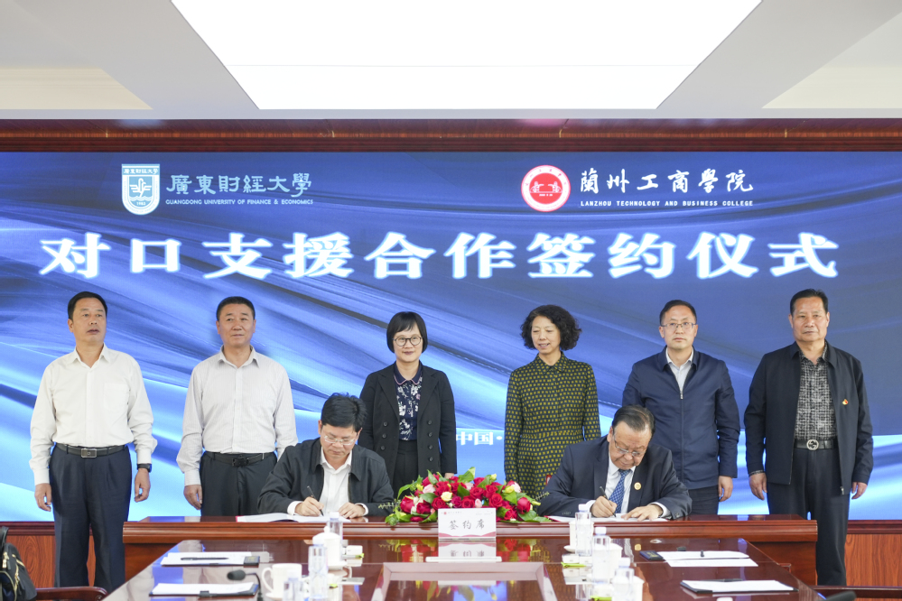 签约仪式上,在广东省教育厅和甘肃省教育厅的共同见证下,广东财经大学党委副书记罗贤甲和广东金融学院党委副书记刘春阳与兰州工商学院董事长、校长完颜弟分别签署《广东财经大学对口支援兰州工商学院合作协议》《广东金融学院对口支援兰州工商学院合作协议》。兰州工商学院将以此为契机,借助两所院校的办学优势,在师资队伍建设、学科专业建设、人才培养质量、科研能力和产教研融合等方面找差距,补短板,助推学校教育教学质量全面提升。同时,通过粤甘两地文化交流与合作,促进互利共赢,助推西部地区高等教育高质量发展。