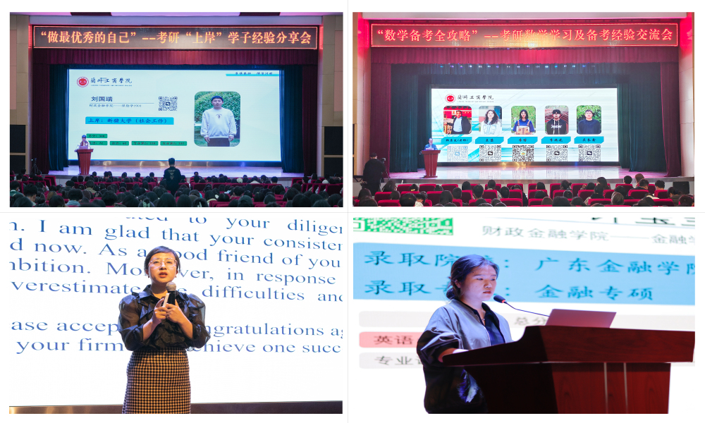 为进一步加强考研学习氛围的营造,为广大考研学生搭建经验分享交流学习的平台与载体,传承兰工商考研精神,学校于2023年5月组织开展了“成功上岸的五月”系列活动。