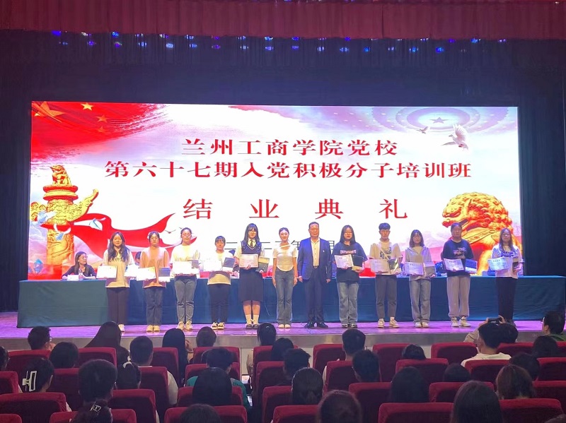 6月7日下午,兰州工商学院党校第六十七期入党积极分子培训班结业典礼在学术报告厅举行。学校党委书记雒建子,党委委员、宣传部部长刘伟及在校各基层党委(党总支)书记出席典礼,各学院党务秘书,党委组织部、宣传部老师及全体培训学员参加了典礼。典礼由党委委员、宣传部部长刘伟主持。