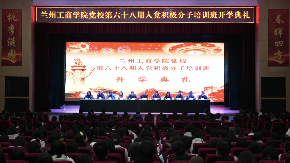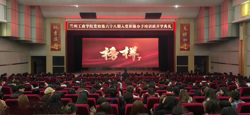 10月18日下午,兰州工商学院党委第68期入党积极分子培训班开学典礼在学术报告厅举行。校党委书记雒建子,校党委副书记、副校长郇东,校党委委员、宣传部部长刘伟,各基层党委(党总支)书记,各二级学院党政秘书,党委组织部教师及全体培训班学员780余人参加了典礼。典礼由校党委委员、宣传部部长刘伟主持。