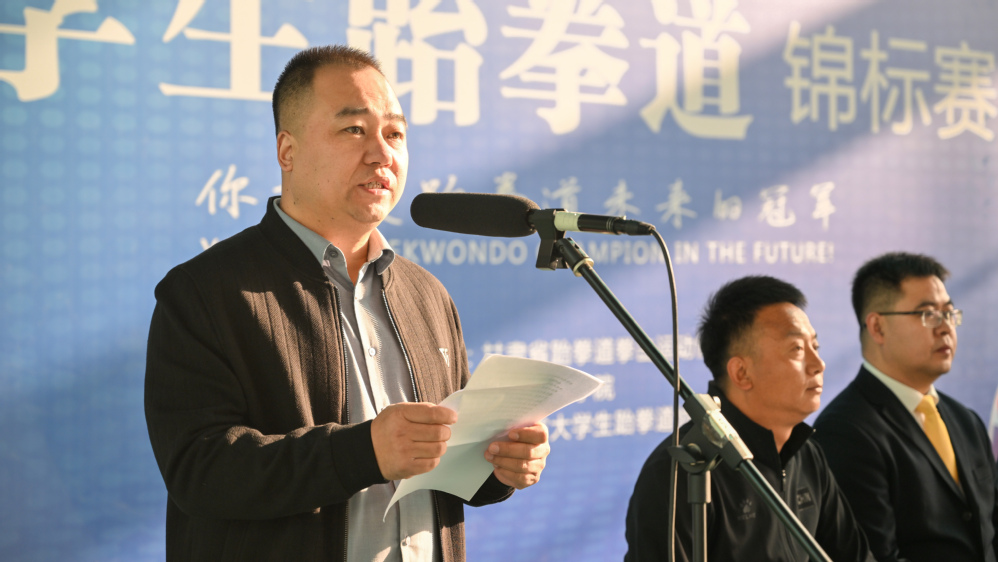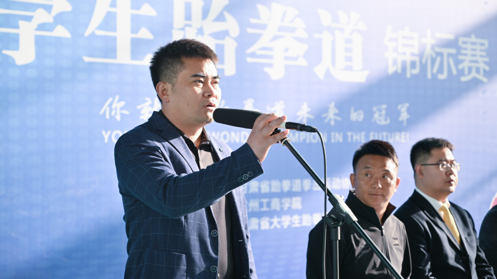 甘肃省跆拳道拳击运动协会主席王国红出席开幕式并宣布甘肃省第一届大学生跆拳道锦标赛开幕。