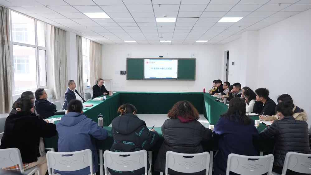 王教授还与数学部教师开展座谈交流,指导数学教师教学创新和科研能力提升。座谈交流会上,王教授围绕数学教师提出的青年教师如何形成个人的教学风格,如何统筹推进教学、教研、教改工作,如何提升个人的学术科研能力,如何有效指导考研学生备考复习等方面的问题,进行了全面解读和系统指导,与会教师深受启发,受益颇深。
