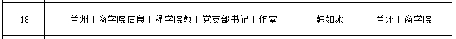 近日,甘肃省委教育工委下发《关于公布甘肃省第一批新时代大中小学“双优”党支部书记工作室创建名单的通知》,公布了甘肃省第一批新时代大中小学“双优”党支部书记工作室创建名单,我校信息工程学院教工党支部书记韩如冰教授名列其中,成功入选创建名单。