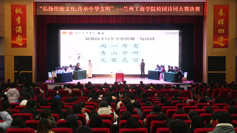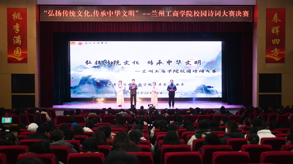为深入学习贯彻党的二十大精神,大力弘扬中华优秀传统文化,不断增强学生的民族自豪感,厚植学生爱国情怀,营造积极向上的校园文化氛围。12月28日下午,学校在学术报告厅举办了兰州工商学院“弘扬传统文化,传承中华文明”校园诗词大赛。校党委副书记、副校长郇东,团委书记段勇,各二级学院党委(党总支)和团总支负责人参加了此次活动,700余名学生到场观摩。