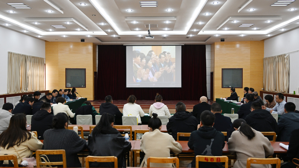 3月20日下午,学校召开党委理论学习中心组学习(扩大)会议重温习近平总书记在学校思想政治理论课教师座谈会上的重要讲话。校领导、党委委员、各职能部门负责人、基层党委(党总支)书记、直属党支部 (副)书记、马克思主义学院全体教师参加学习,会议由校党委书记雒建子主持。