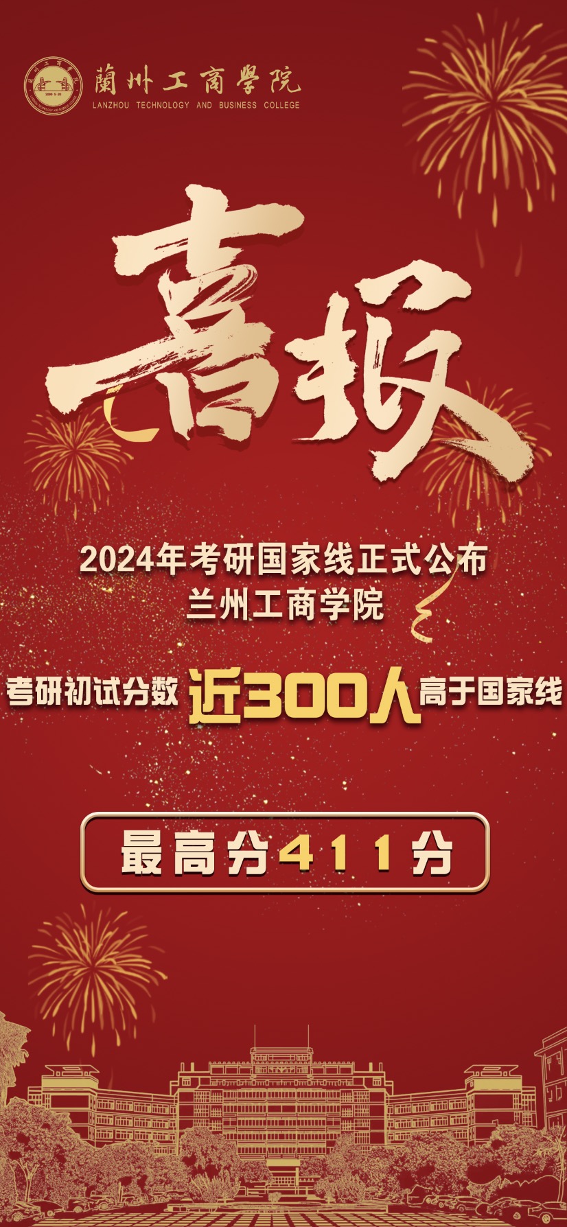 近日,全国硕士研究生招收单位陆续开始组织复试工作,在3月中旬国家线公布后,经统计,兰州工商学院今年报考2024年全国硕士研究生招生考试的学生中共有近300名学生上线,最高分达到411分,上线人数和最高分均创学校历史新高。