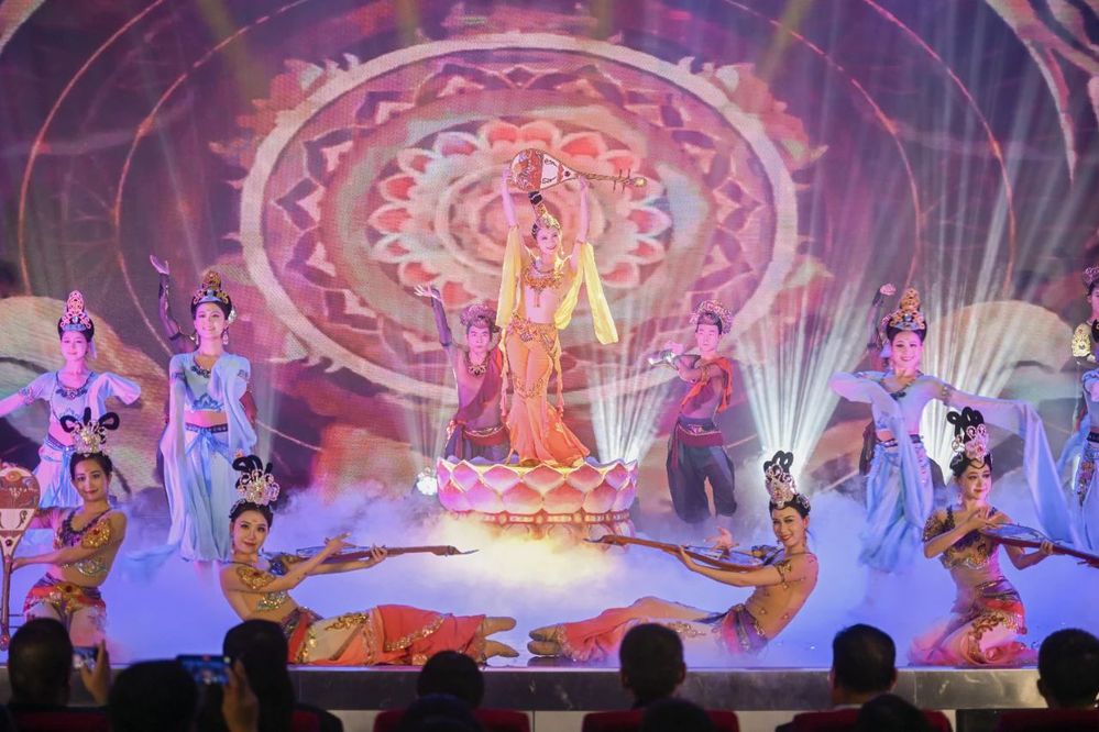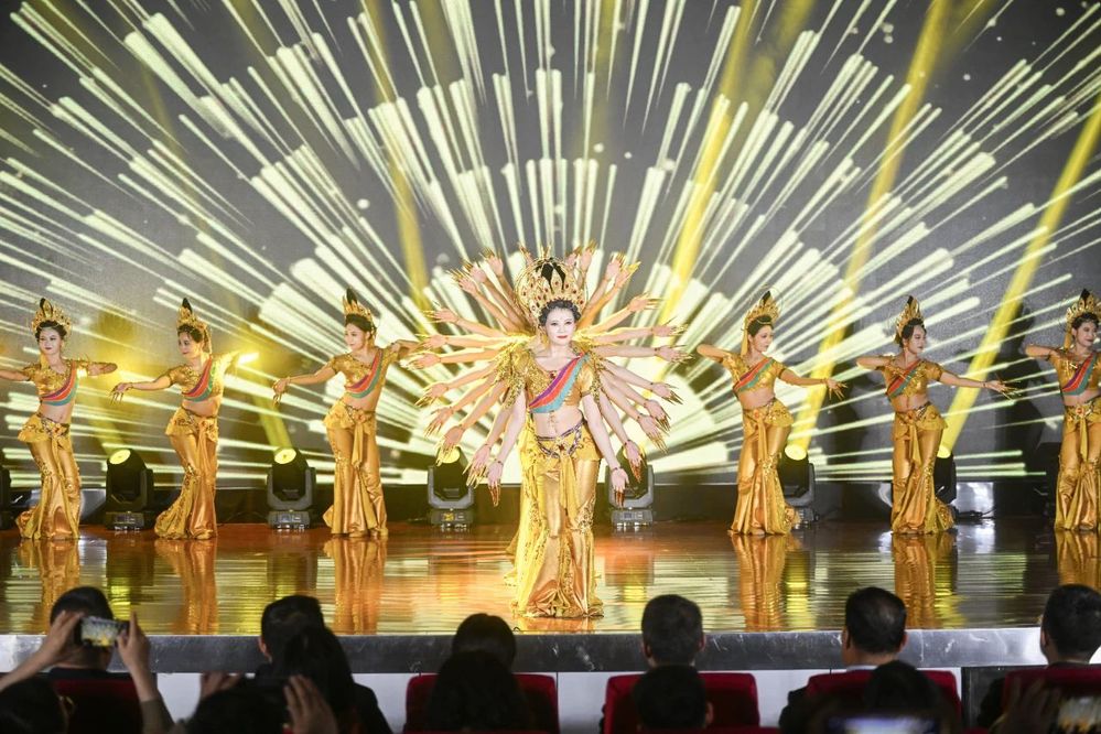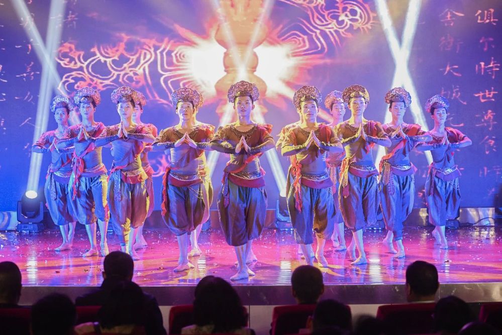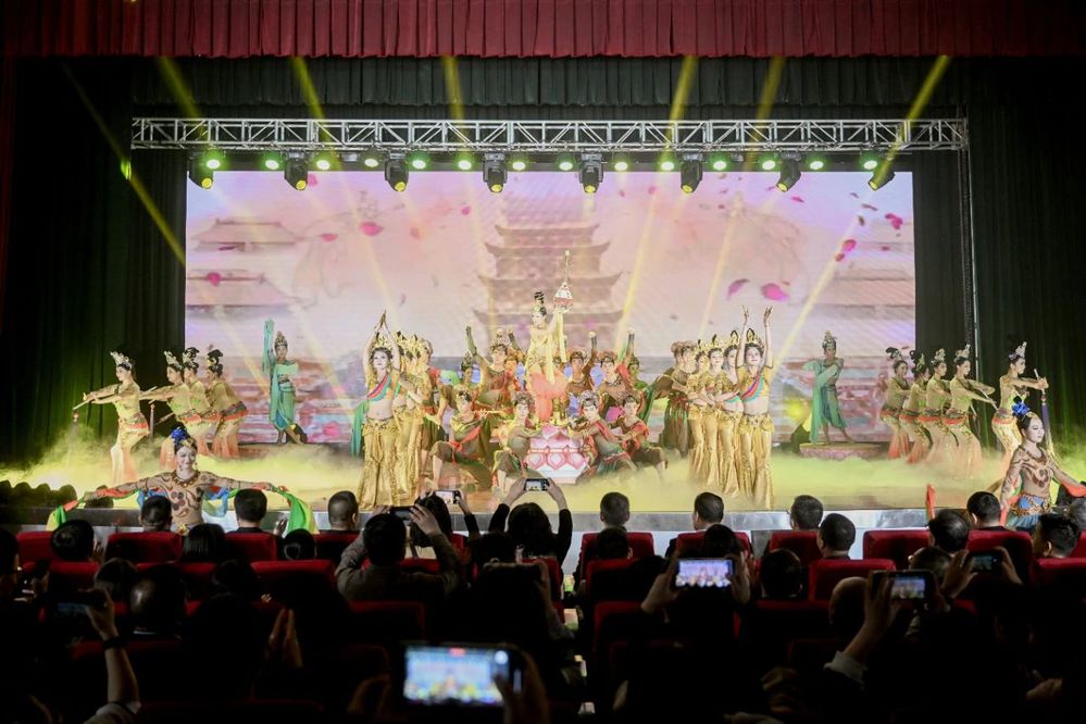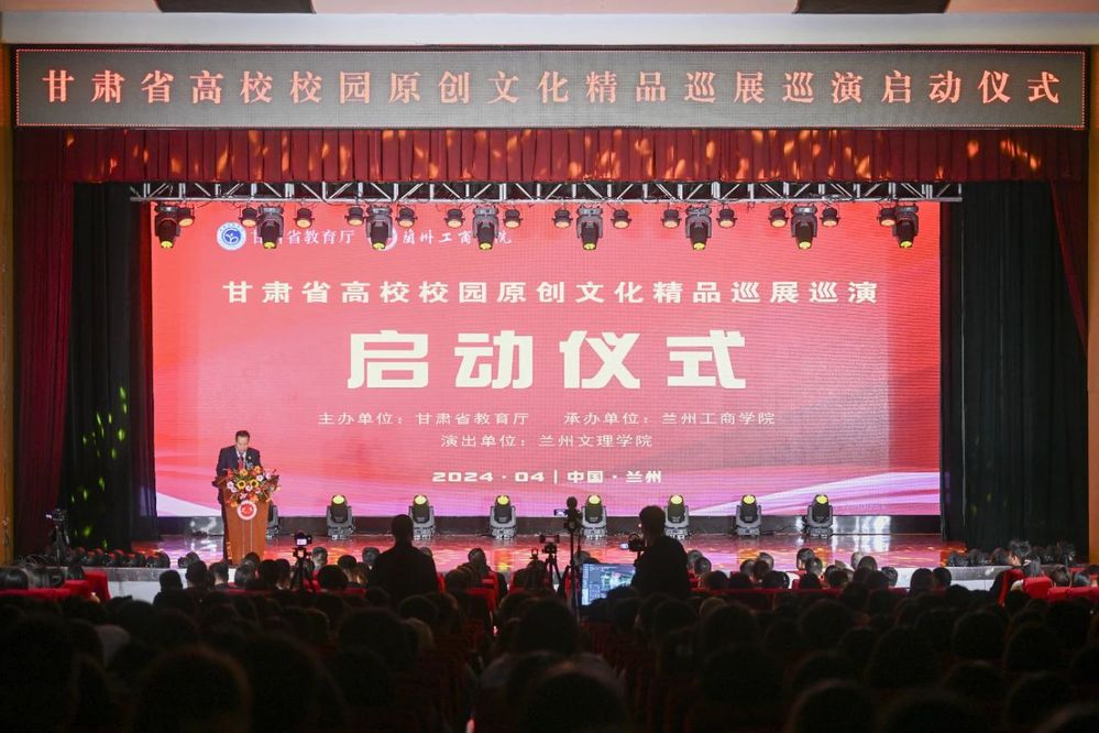 为深入学习贯彻习近平文化思想,进一步巩固和拓展学习贯彻习近平新时代中国特色社会主义思想主题教育成果,推动各地各高校深入推进落实“时代新人铸魂工程”,根据《教育部办公厅关于开展高校校园原创文化精品巡展巡演的通知》精神和省委教育工委统一安排部署,4月17日晚,全省高校校园原创文化精品巡展巡演在兰州工商学院正式启动,在兰高校宣传部门负责同志及兰州工商学院师生代表共计800余人,共同观看了兰州文理学院原创舞台剧《舞从敦煌来》。