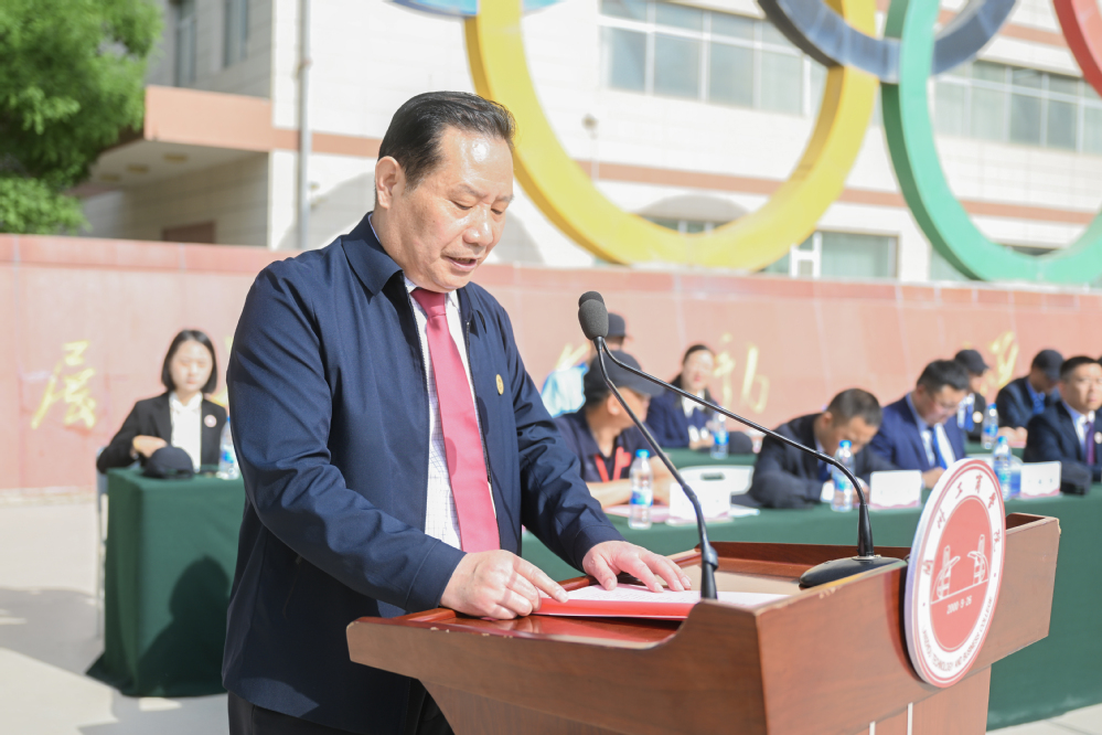 党委书记雒建子致开幕辞,他代表学校向运动会的顺利举行表示热烈的祝贺,向参加大会的全体运动员、裁判员和教练员表示亲切的问候,向积极组织、精心筹备大会的师生员工表示衷心的感谢。他指出,这次运动会是我校师生展示自我、发展个性特长的舞台,也是对全体大学生心理素质、身体素质、体育运动素质和精神风貌的一次大检阅。他希望全体师生珍爱生命,在运动中感受美好生活,享受精彩人生,焕发青春活力;希望全体师生增强体魄,追求卓越,彰显新时代兰工商人的蓬勃朝气、昂扬锐气和浩然正气;希望全体师生弘扬体育精神,让青春的活力迸发在赛场每个角落;希望全体裁判员秉持公开、公平、公正的原则,恪尽职守,严格赛纪,为各项比赛营造良好的氛围,确保各项比赛项目顺利进行。