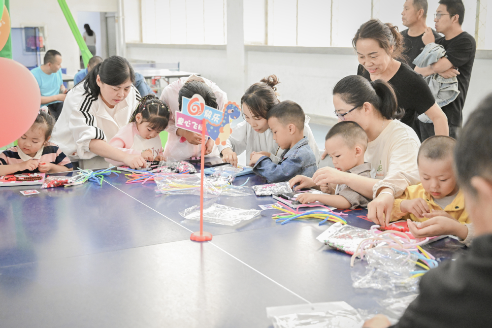 活动现场人声鼎沸,彩球凌空,120多名儿童和家长、60个家庭瞬间将体育馆演绎成一片欢乐的海洋,一系列丰富多彩的互动游戏,共同描绘了一幅五彩斑斓的童梦画卷。
