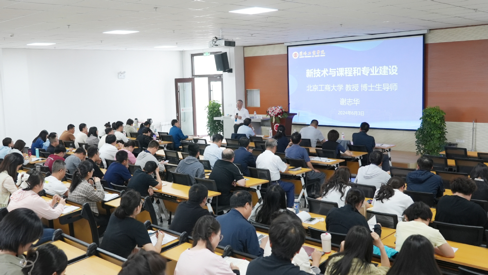 6月3日下午, 我校首届学术活动月系列学术报告会邀请北京工商大学博士生导师谢志华教授作“新技术与课程和专业建设”为主题的学术报告。我校常务副校长马义哈、副校长张春庆、相关职能部门人员及教师共计100余人参加了此次报告会。报告会由副校长李培根教授主持。