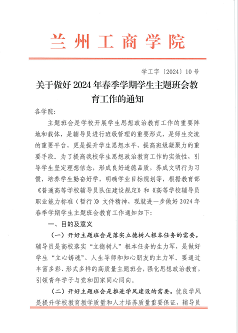 高校主题班会是高校进行大学生思想政治教育的重要载体和阵地,辅导员通过设计、规划、组织主题班会,能够很好地了解大学生的思想、学习和生活状况,掌握学生的思想动态,增强思想政治教育工作的针对性和实效性。为了提升学生思想政治教育实效,加强辅导员队伍建设,本学期初,学校印发了《关于做好2024年春季学期学生主题班会教育工作的通知》,通过组织人员全程听课、评价、反馈等方式,严把班会质量关,着力提升辅导员主题班会质量。