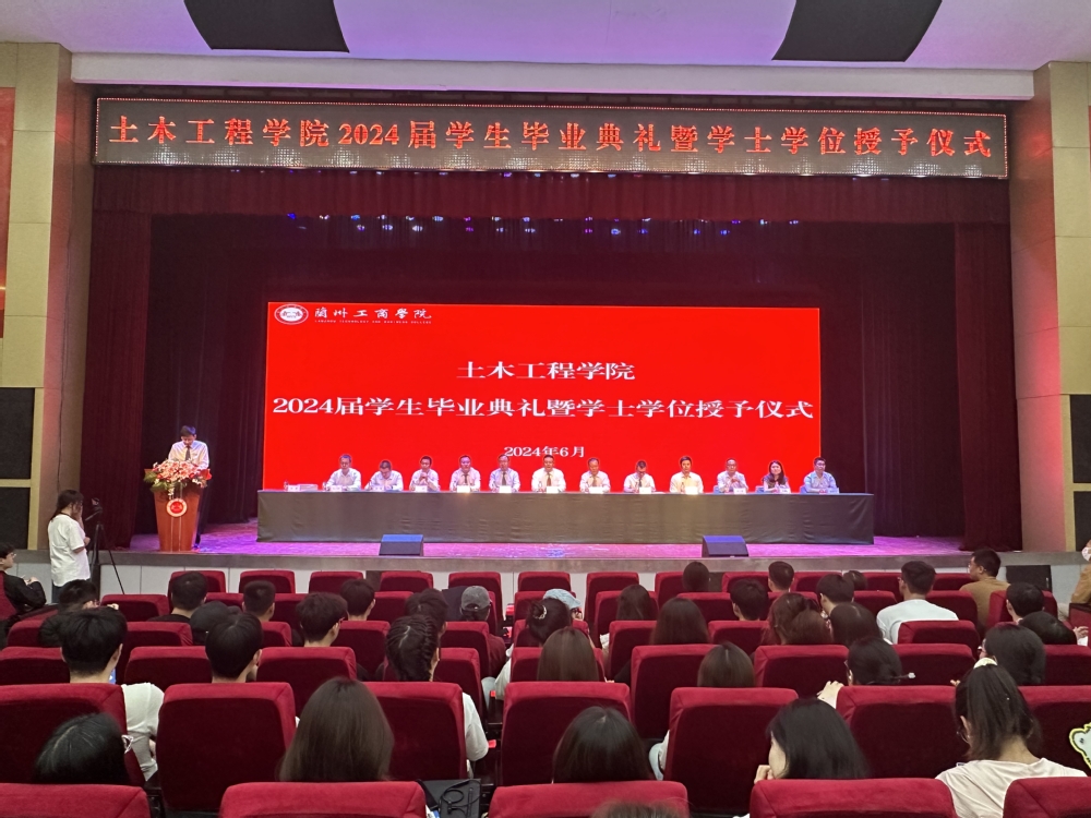 6月12日晚,土木工程学院2024届学生毕业典礼暨学位授予仪式在学术报告厅隆重举行。学校副校长张春庆、学院领导班子成员、各教研室主任、毕业班辅导员、教师代表、全体2024届毕业生及低年级学生代表,共计700余人齐聚一堂,共同见证这一光荣、庄重的时刻。毕业典礼由学院党委书记、行政院长彭勇主持。