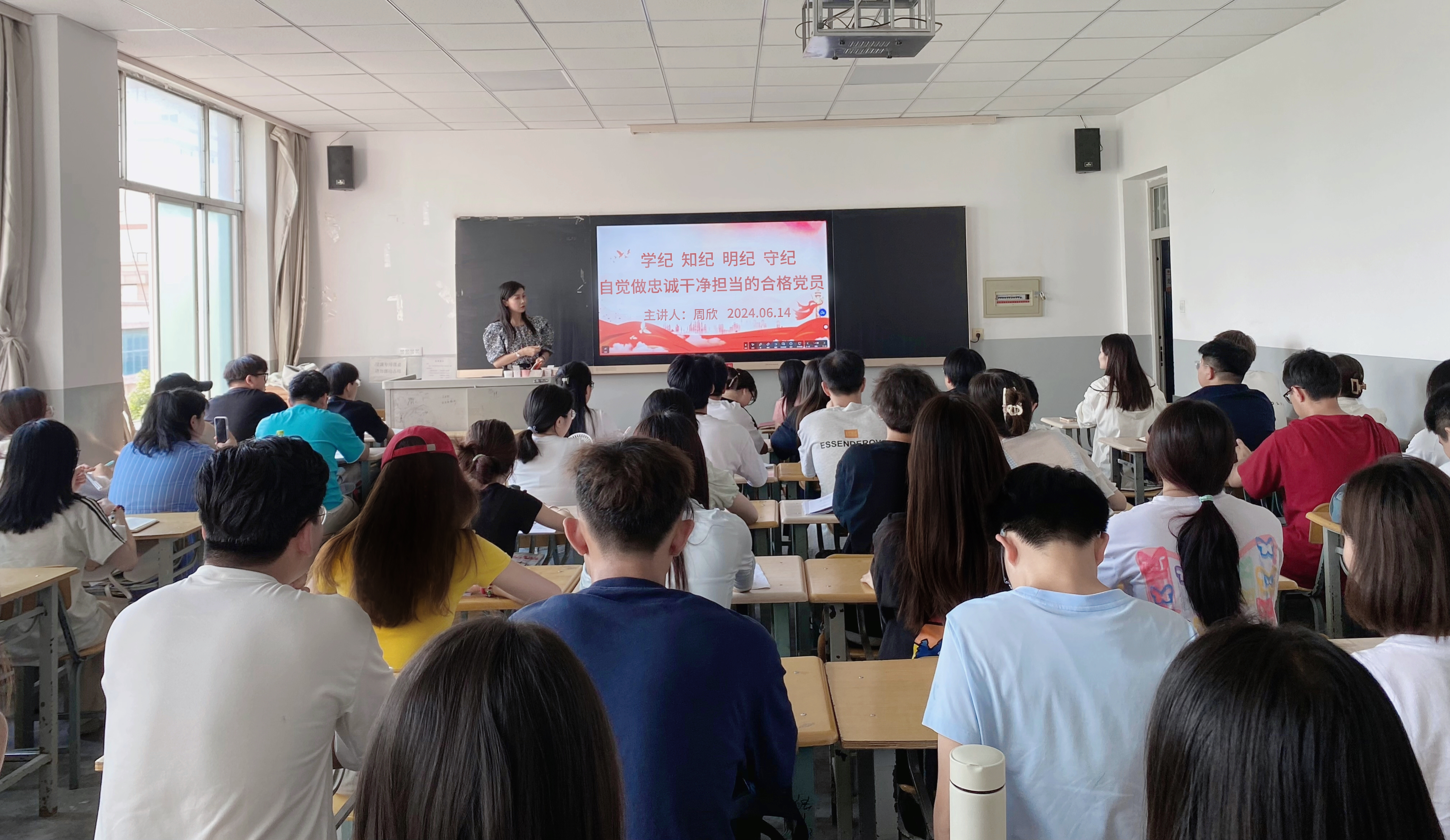 为深入贯彻落实习近平总书记关于党纪学习教育的重要讲话精神和重要指示精神,进一步深化对《中国共产党纪律处分条例》的学习,推动党纪学习教育入脑人心,教育引导广大学生党员提升党性修养、增强纪律意识、践行服务宗旨、强化责任担当,6月14日下午,学院党委书记周欣以《学纪、知纪、明纪、守纪,自觉做忠诚干净担当的合格党员》为题,为学生党员讲党纪学习教育专题党课。