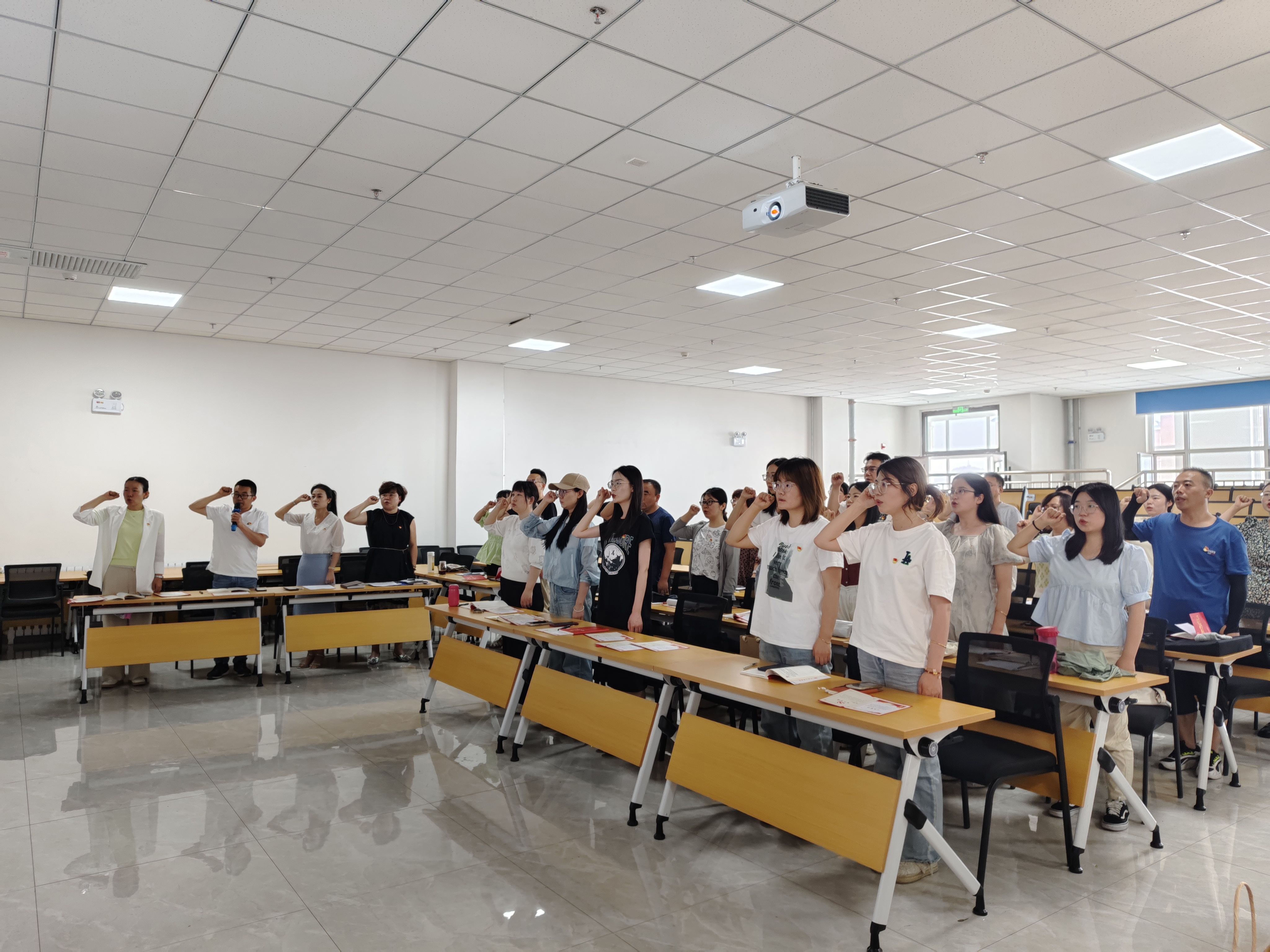 一份精美的贺卡,传递了组织对党员政治生日的殷勤祝福,又给予了党员一份沉甸甸的政治责任。教工党员代表王育琴、杨莉两位同志发表了自己的政治生日感言和自己的入党初心,她们纷纷表示,政治生日是新起点,是对党的忠诚与信仰的再次宣誓,作为一名党员,不忘初心、牢记使命,会一直坚守立德树人的责任感和使命感,关心关注学院未来的发展,把对党的感情化为做好服务师生工作的强大动力。接着,全体党员同志许下政治生日愿望,粘贴到愿望粘贴栏。最后支部委员刘子泰同志带领全体党员重温入党誓词。大家高举右拳,神情庄严,声音铿锵,面对鲜红的党旗,再次许下了“对党忠诚,永不叛党”的庄重承诺,一字一句、铮铮誓言,体现了党员们对党的无限忠诚,更加坚定了入党使命和奋斗初心。