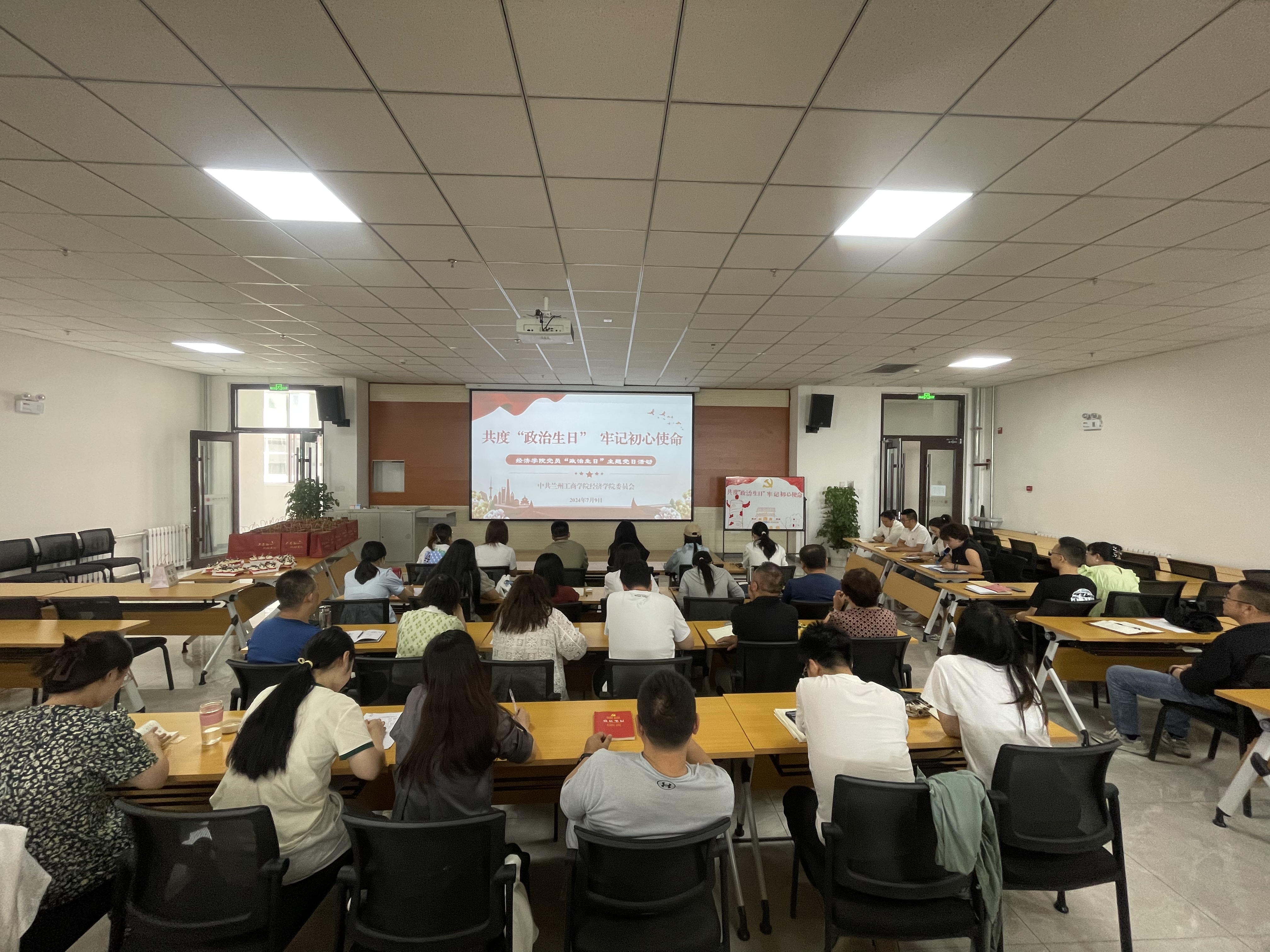 为深入贯彻习近平新时代中国特色社会主义思想,庆祝中国共产党成立103周年,进一步增强党员的党性观念、荣誉感和责任感,7月9日上午,经济学院教工党支部在综合教学楼C503教室开展“共度政治生日,牢记初心使命”主题党日活动,全体教工党员参加,活动由教工党支部书记胡瑜杰主持。