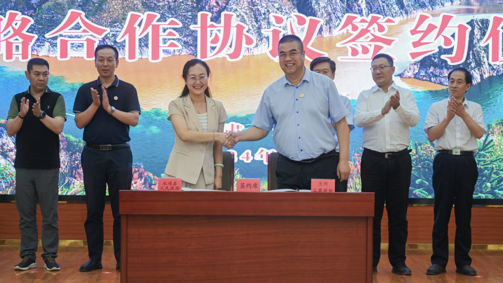 随后,在双方参会人员的见证下,永靖县人民政府与兰州工商学院成功签约。