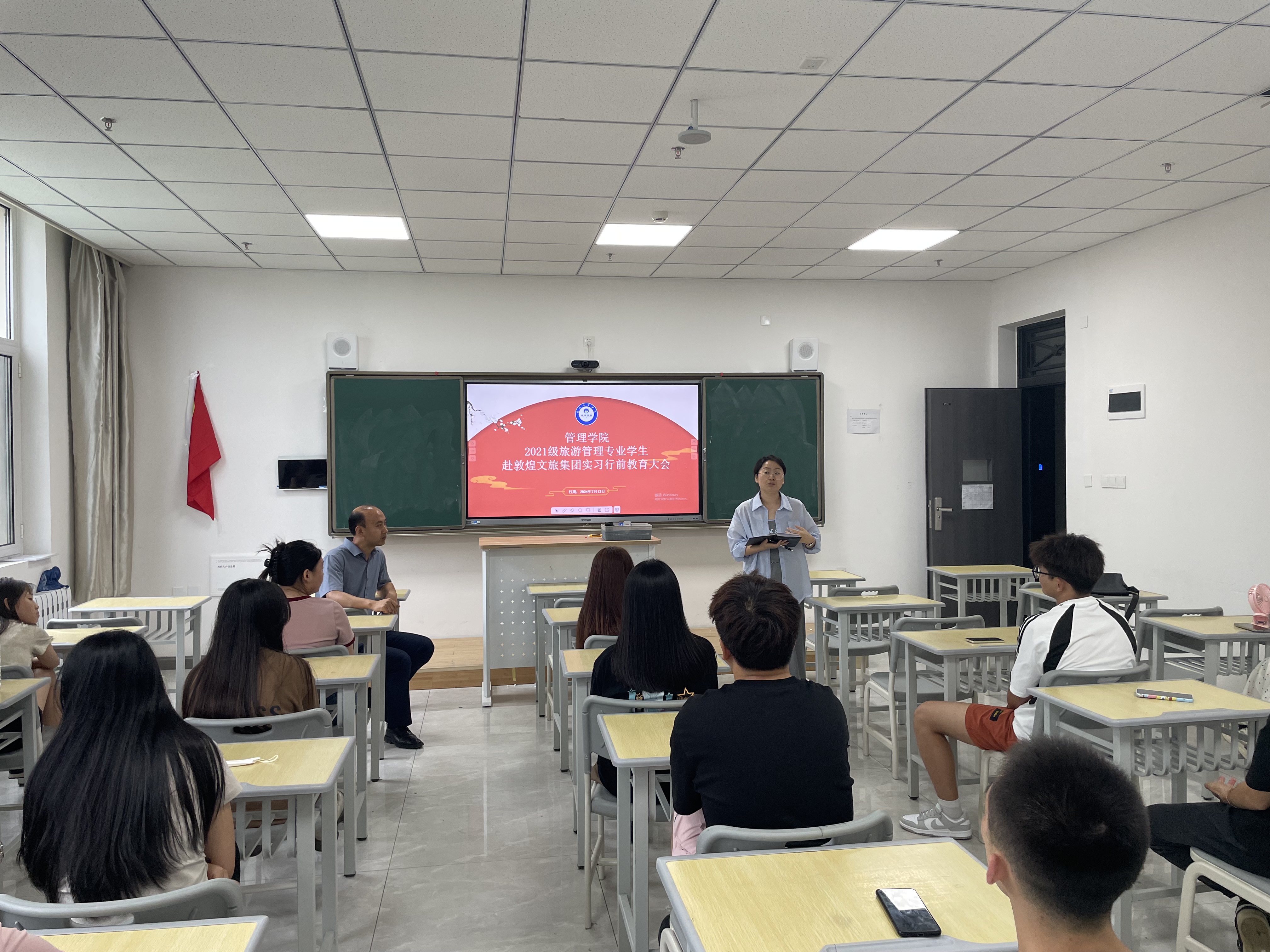 为做好毕业实习工作,提升学生综合素质,近日管理学院在综合教学楼A305召开2025届旅游管理专业学生赴敦煌文旅集团实习行前教育大会。学院党委书记兼行政院长马进宝、教学院长徐燕、辅导员孙鑫及全体实习学生参会。