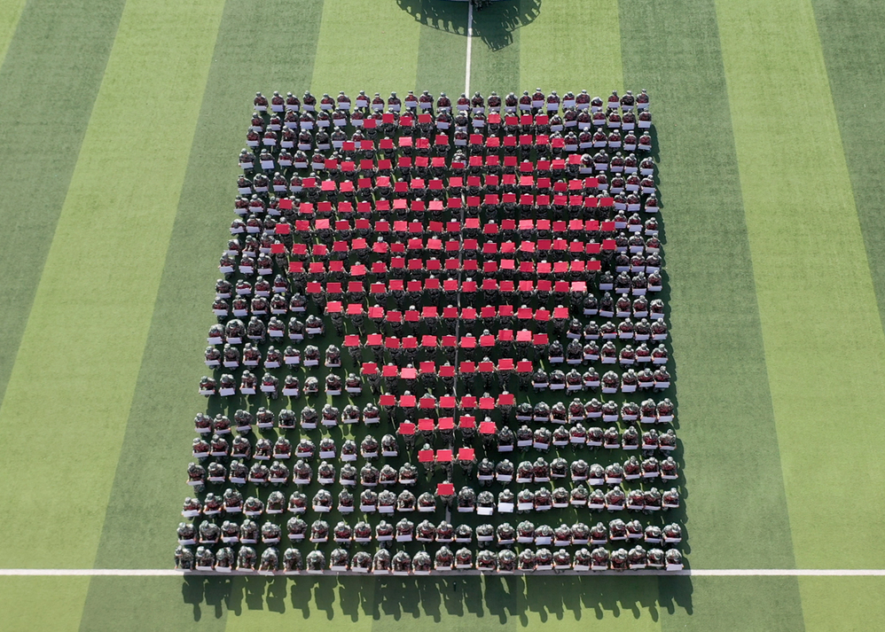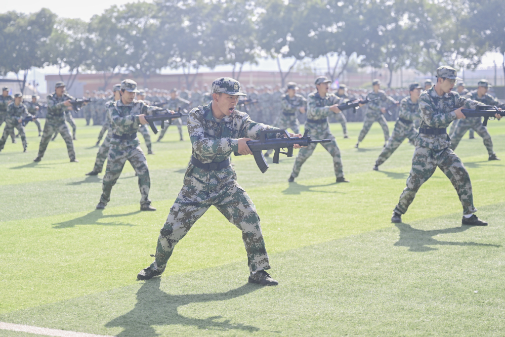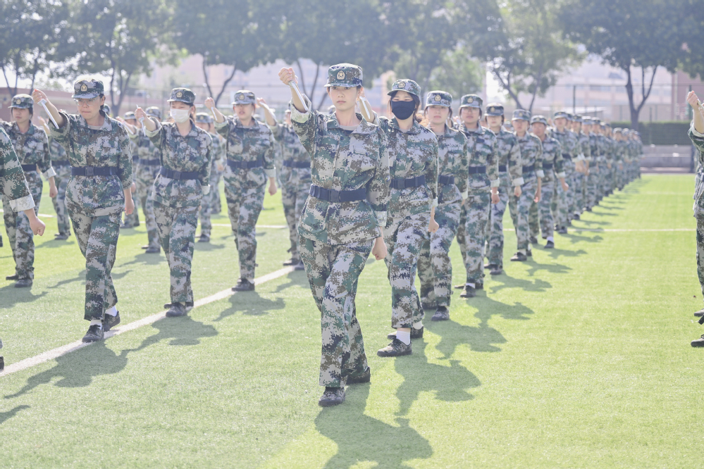 结营仪式在雄壮的国歌声中正式开始。由上百名同学组成的活字方阵,如同电子屏幕,整齐精确的展现了学校的办学历史和荣誉成绩。一声令下,分列式队伍阔步入场,8个学院16个分列式方队气势如虹、英姿勃发,斗志昂扬,依次经过主席台接受检阅,同学们精神状态饱满,动作整齐划一,口号势破云霄,尽显青春朝气、军人风范。在军事训练科目成果展示中,擒敌拳方阵果敢刚毅、匕首操方阵犀利威武、刺杀操方阵英姿飒爽。战术行动演练利用烟雾弹模拟硝烟弥漫的作战环境,展现了一场惊心动魄的高地狙击战,将汇报表演推向了高潮。