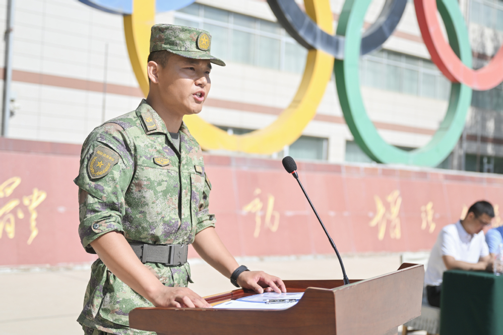 承训部队教官代表作了发言,他鼓励所有同学要继续努力,将军人的严谨作风融入学习、将军人的团队精神融入生活、将军人的坚韧意志融入实践、将军人的爱国情怀融入理想,不断提升能力素质,成长为德智体美劳全面发展的社会主义建设者和接班人。