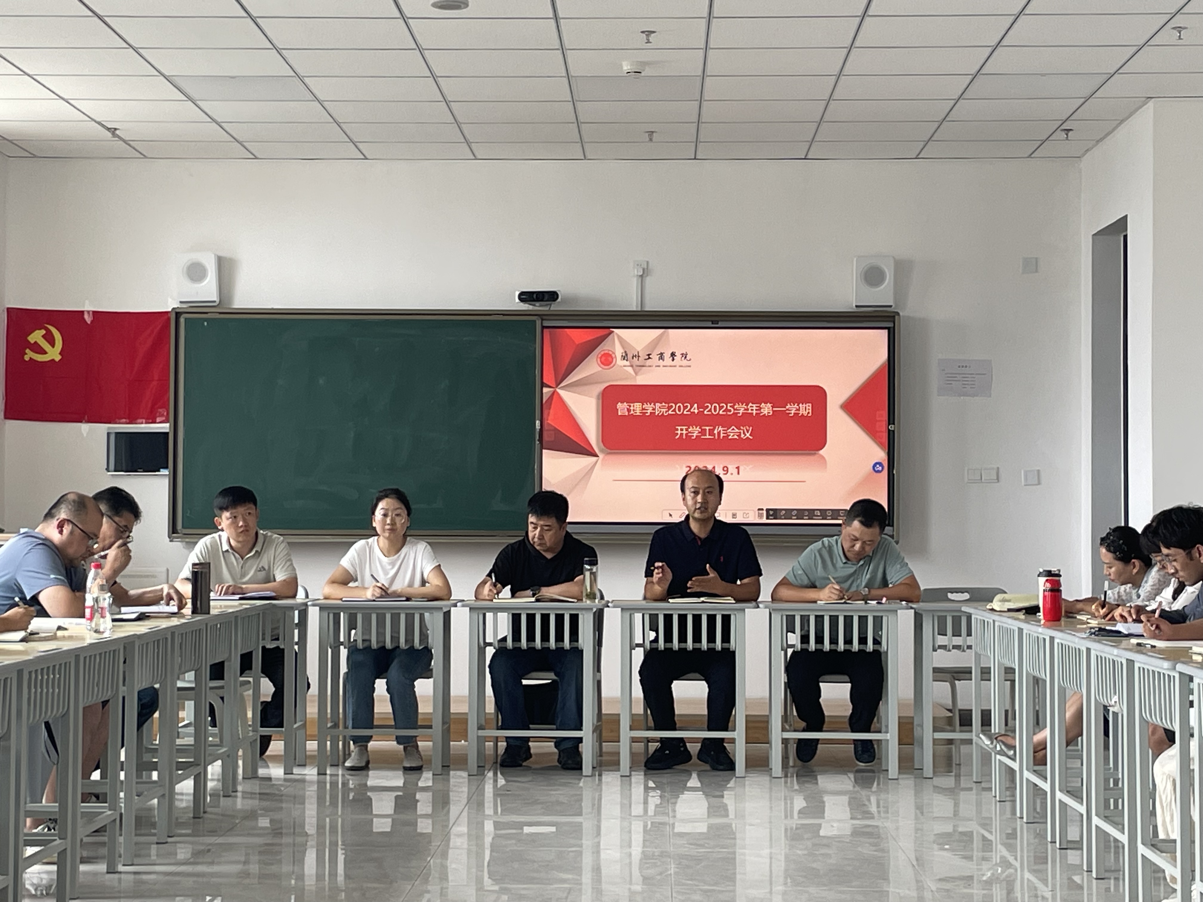 9月1日,管理学院在综合教学楼C307教室组织召开2024-2025学年秋季学期开学工作会议,学院班子成员及全院教工参会,会议由党委书记兼行政院长马进宝主持。