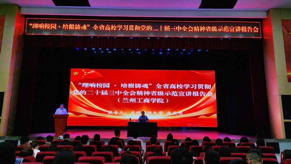 为全面深入学习贯彻党的二十届三中全会精神,按照省委教育工委《关于组织开展“理响校园·培根铸魂”全省高校学习贯彻党的二十届三中全会精神省级示范宣讲工作的通知》的统一安排,9月5日下午,学校在学术报告厅举办“理响校园·培根铸魂”全省高校学习贯彻党的二十届三中全会精神省级示范宣讲报告会,省委教育工委宣讲团成员、兰州财经大学马克思主义学院副院长庞庆明教授莅临我校作报告。报告会由校党委书记雒建子主持。