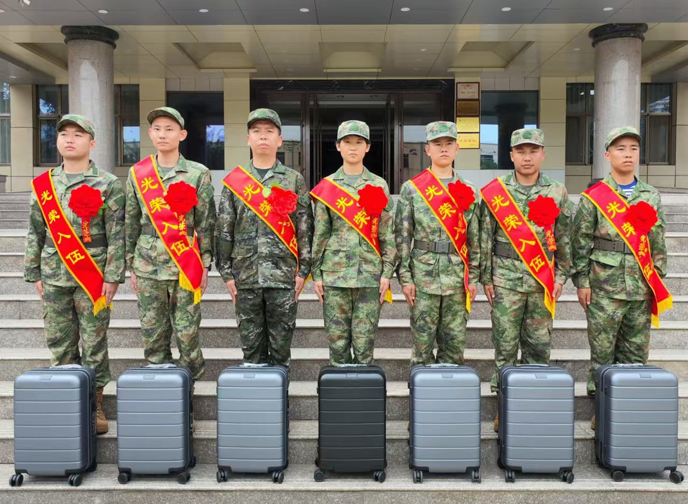 最后,郇东为新入伍学生整理绶带、佩戴 “入伍光荣”大红花,代表学校为每位入伍学生赠送了纪念品并合影留念。