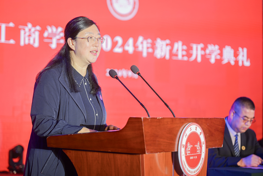 会上,土木工程学院工程造价2401班的孟星宇同学代表2024级新同学发言;会计学院李菊香教授代表全体教师发言,她勉励同学们要保持积极向上的态度,明确自身职业发展目标,脚踏实地、砥砺奋进,努力成长为具有“家国情怀、创新精神、实践能力”的卓越人才。随后,学校优秀校友代表、阳光财产保险有限公司甘肃分公司总经理刘斌分享了自身的学习经历,鼓励新同学们要明确目标、勤奋学习,勇敢面对学习、生活中的挑战与困难。