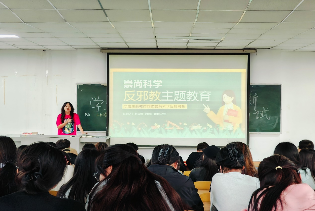 为进一步增强同学们对邪教组织的认识,提高大家的防范意识,营造健康、积极的校园环境,经济学院于2024年9月17日至24日组织开展反邪教主题班会,此次班会由各班辅导员主持,全体同学参加。