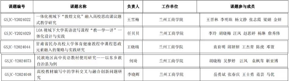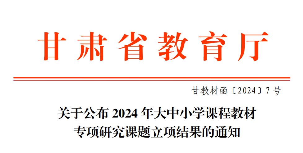 近日,甘肃省教育厅公布2024年大中小学课程教材专项研究课题立项结果,我校共有《一体化视域下“敦煌文化”融入高校思政课议题式教学研究》等5个课题获批立项。获批立项名单如下: