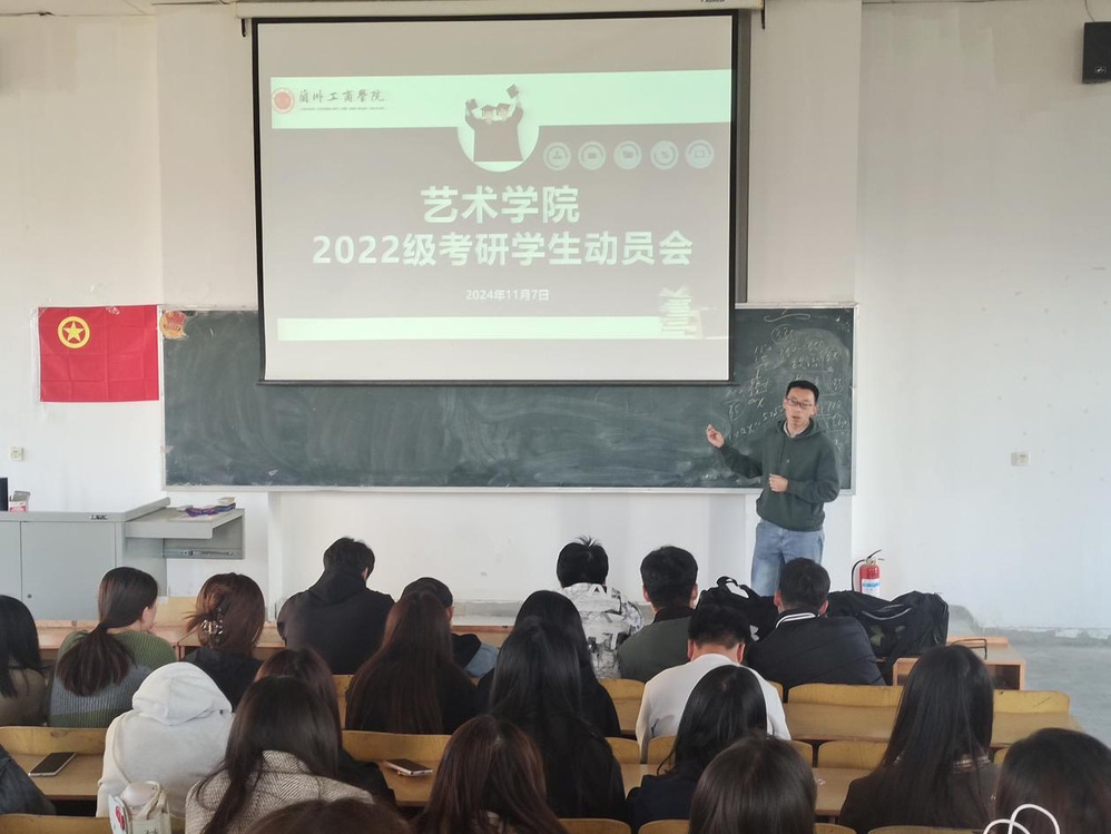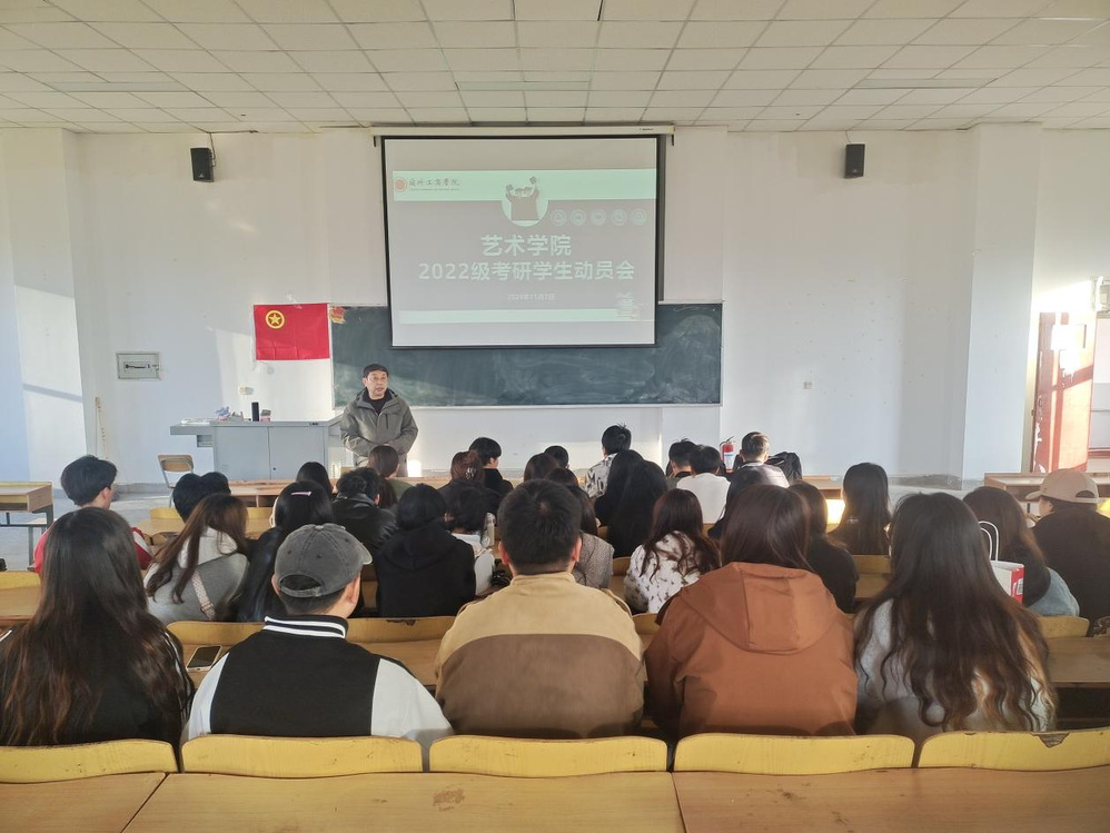 为了充分调动2022级学生的考研积极性和主动性,帮助学生树立考研自信心,进一步营造良好的考研氛围。11月8日,艺术学院在善问楼415教室召开2022级学生考研动员大会。教学院长徐越、王坤,行政院长张德红及部分2022级学生参加了会议,会议由张院长主持。