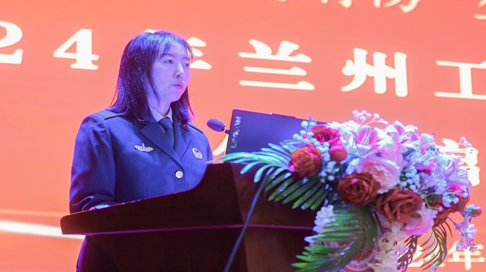 仪式开始,全体人员起立,迎国旗并奏唱国歌。随后,保卫处负责人何健德解读了《兰州工商学院2024年度消防宣传月活动实施方案》,并就做好校园消防安全工作做了详细安排。法学院法学(律师方向)2202班学生、学校学生志愿消防队队员李苗苗同学代表学生志愿消防队进行了发言。