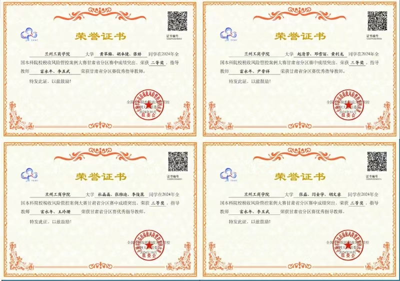 2024年11月2日,在刚刚结束的2024年全国本科院校税收风险管控案例大赛甘肃省分赛区中,经济学院财政学专业的学生团队表现出色,荣获二等奖一项和三等奖三项的佳绩。这一成绩的取得,不仅是对经济学院财政学专业课程教学改革和实践创新成果的肯定,也是对学生专业学习兴趣和理论实践能力提升的显著体现。