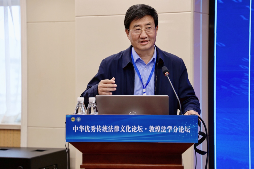 本届论坛暨年会在线上线下同步启动,采取“一总五分”的形式,在兰州、庆阳、陇南、临夏四地设有敦煌法学、简牍法学、红色法治文化、马锡五审判方式、中华民族共同体法治文化五个分论坛。在本次敦煌法学分论坛上,来自中省内外高校、法学会及司法实务界的80余位专家学者齐聚一堂,就敦煌法学的理论与实践问题进行了深入交流,为敦煌法学的繁荣发展提供了新思路、新动力、新灵感。我院院长李玉璧教授以《敦煌契约文书看中国古代民间公证——以<赵僧子典儿契>为例》为题作主旨发言。