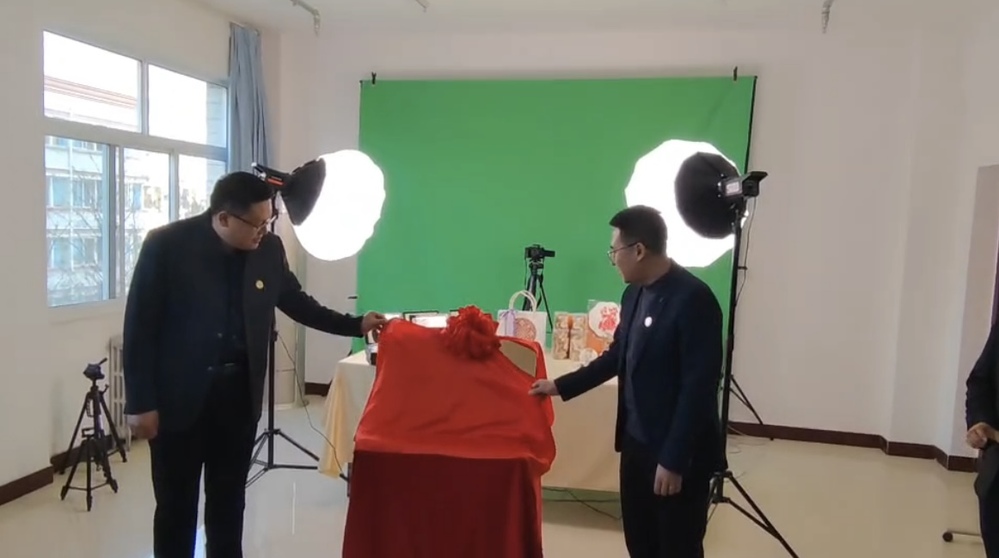 在热烈的掌声中,兰州工商学院副校长张春庆教授、大学生创新实践中心副主任张浩共同为校园直播间揭牌,标志着直播间正式启用。随后,众人一同参观了直播间内部设施。