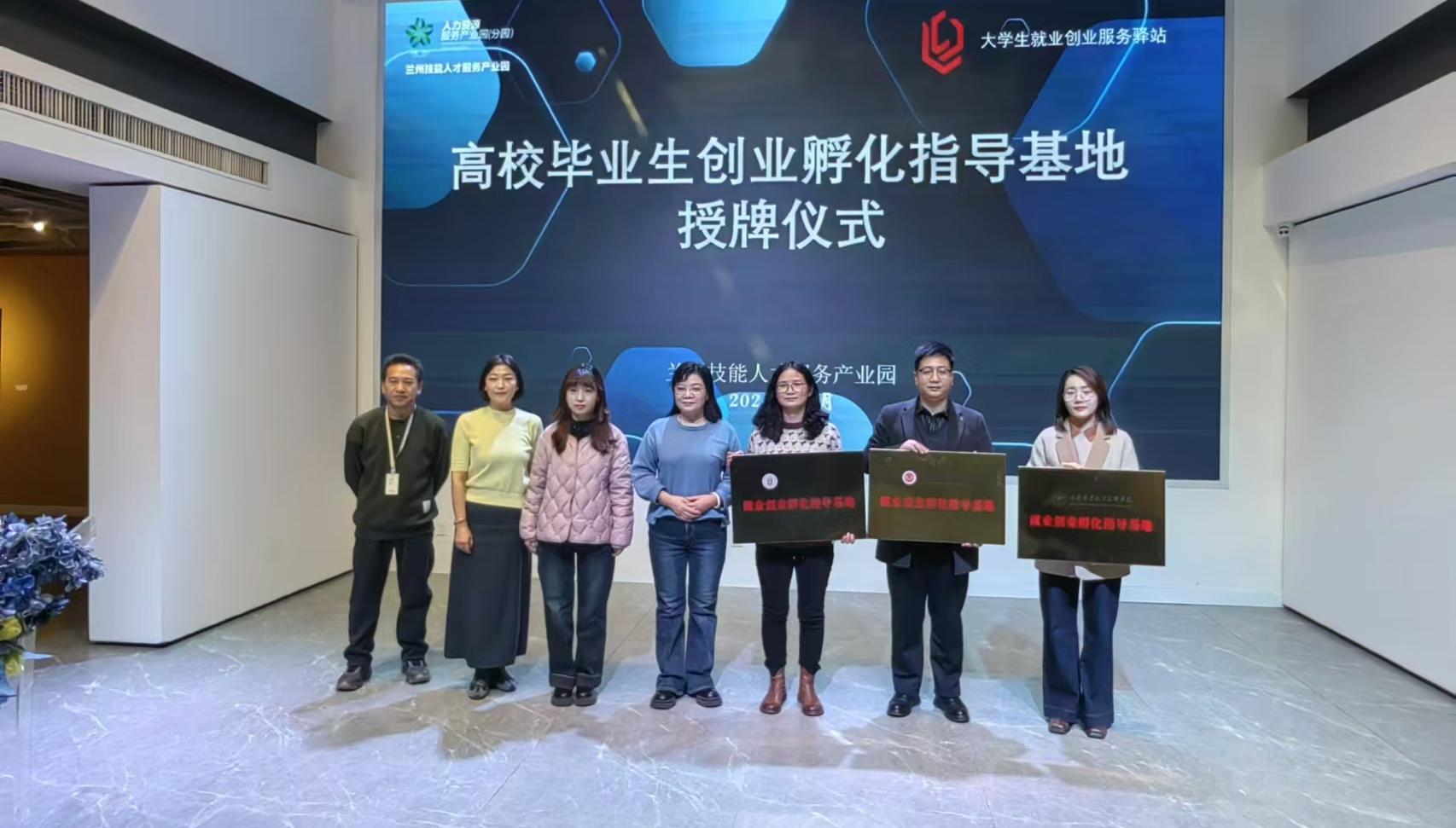活动现场,兰州工商学院就业指导中心老师与创意文化产业园领导一同为我校大学生就业创业孵化基地揭牌。这标志着我校将与创意文化产业园在创业指导、项目孵化、政策咨询等方面同创意文化产业园展开深入合作,助力学生实习实践、就业创业。