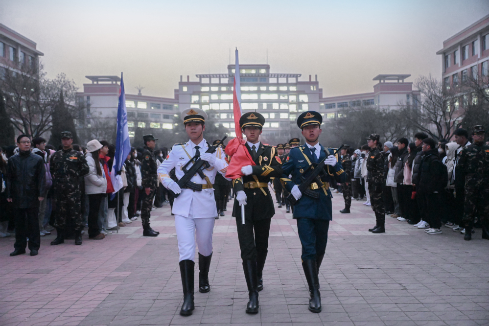 随着激昂的国歌奏响,五星红旗缓缓升起。全体师生面向国旗,肃立行注目礼,齐声高唱国歌,深情表达对祖国的无限热爱和对革命先烈的崇高敬意。