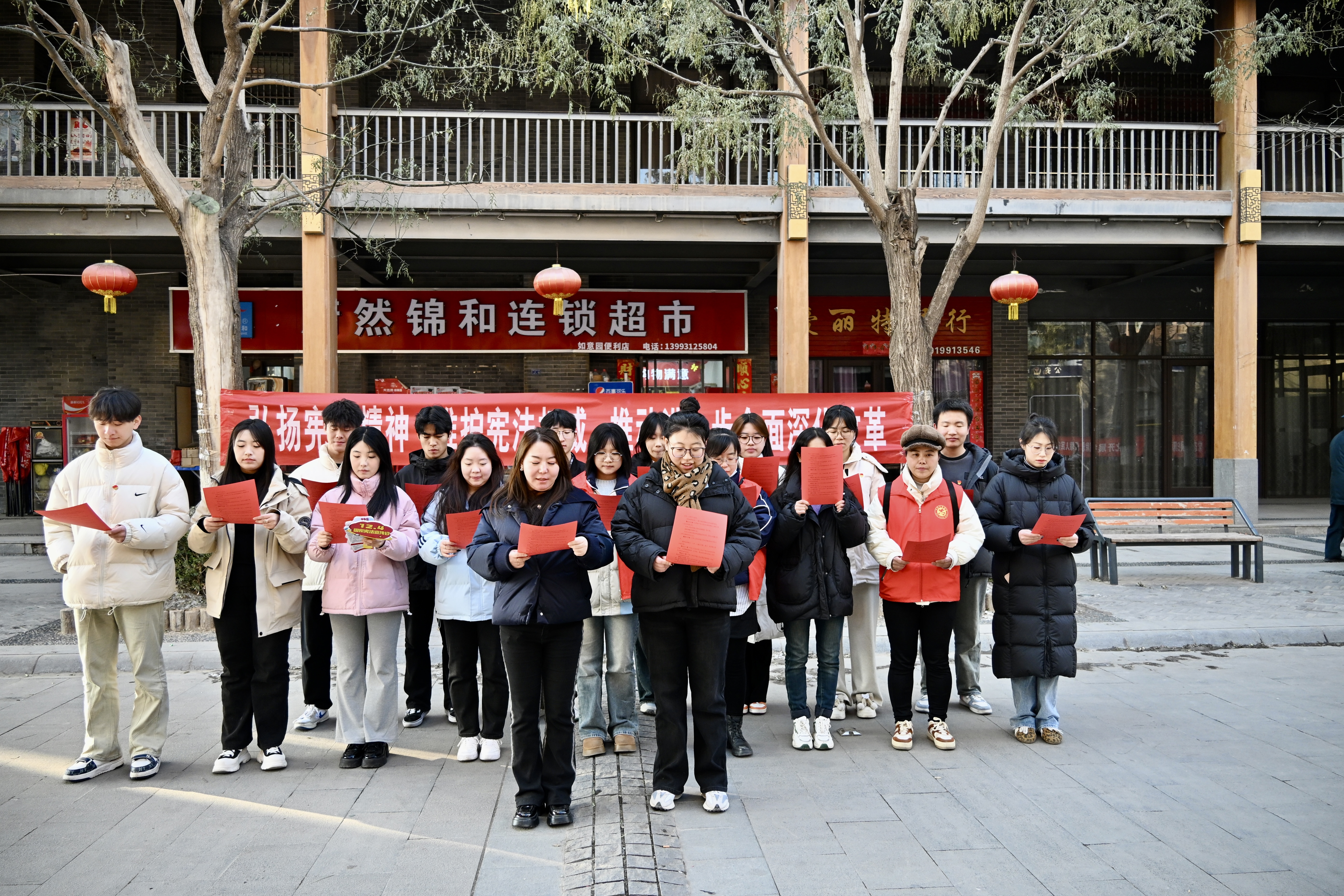 今年12月4日是第11个国家宪法日。为深入学习贯彻党的二十大、二十届三中全会精神,深入学习宣传习近平法治思想,加强法治教育,弘扬宪法精神,推动宪法全面实施,12月4日下午,法学院学生第四党支部与徐家营社区党支部携手合作,共同将宪法宣传的阵地延伸至学校周边小区,开展“法治志愿者送法行”活动。法学院师生党员代表与徐家营社区党员干部共同参与活动。