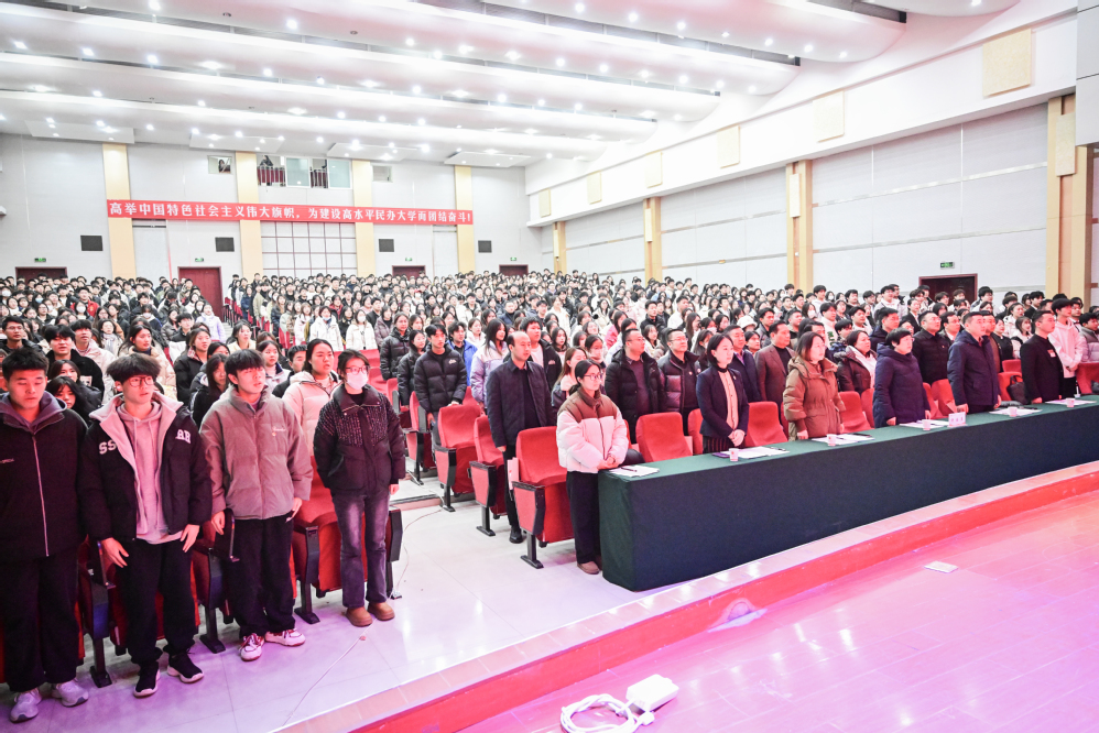 为深入学习贯彻党的二十大、二十届三中全会精神,激发基层党建工作活力,厚植师生爱国主义情怀,积极培育和践行社会主义核心价值观,推动校园文化内涵式发展。12月19日晚,学校在学术报告厅成功举办第二届“讲好红色故事 赓续红色血脉”红色影视作品配音大赛,学校党委书记雒建子,党委副书记、副校长郇东,省教育厅督导专员、纪委书记高仁杰,助理校长周海燕出席活动,党委各部门全体成员、各基层党委(党总支)书记及各学院学生代表等800余人观看了比赛。