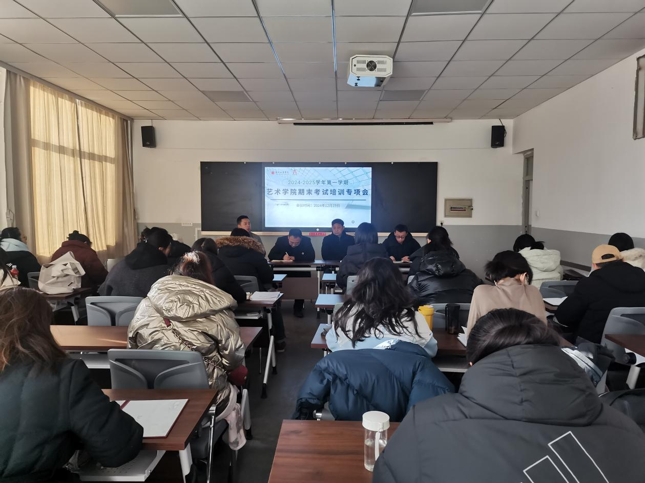 为确保本学期期末考试工作顺利进行,12月20日,艺术学院召开了2024-2025学年第一学期期末考试工作专题培训会。学院教学院长徐越教授、行政院长张德红、党委副书记花彤、教学院长助理马浩、全体专任教师及辅导员参加了培训会,会议由学院教学院长王坤主持。