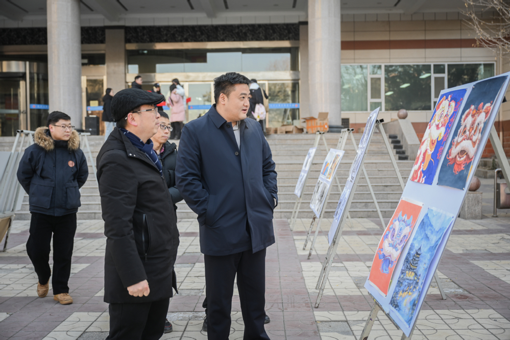 为进一步贯彻落实习近平新时代中国特色社会主义思想和党的二十届三中全会精神,加强思想政治引领,落实立德树人根本任务,搭建艺术学院师生学术交流平台,五育并举促进学生全面发展。12月31日,由兰州工商学院主办,兰州工商学院艺术学院承办的第一届学生手绘大赛优秀作品展活动在学校图书馆前广场隆重举办,现场展出300余件优秀作品。兰州工商学院校长完颜辰树,教学常务副校长宿光平,副校长张春庆、康昱明等学校领导莅临现场观展。