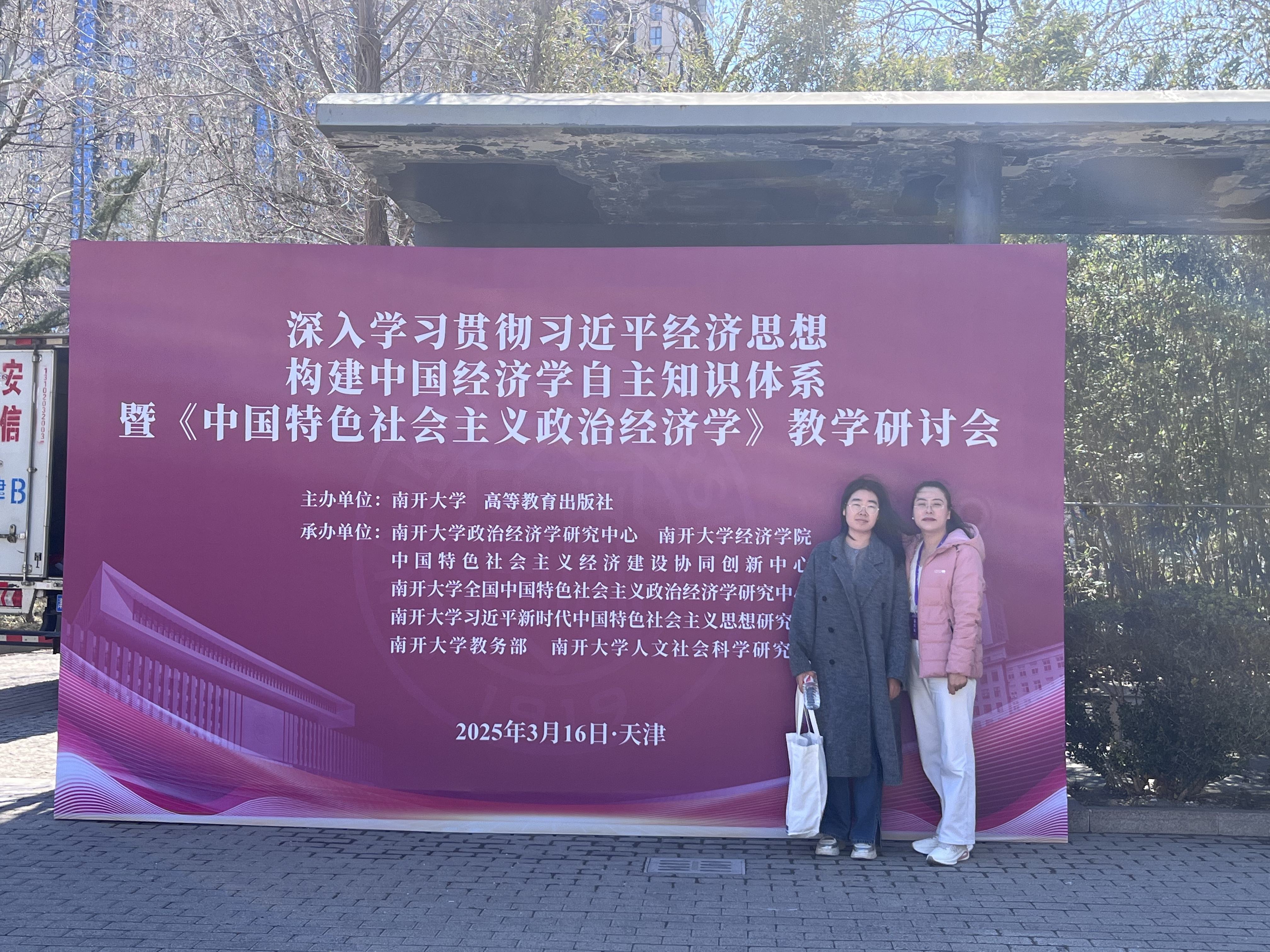3月16日,经济学院教师吴金红、朱婷赴南开大学,参加由南开大学、高等教育出版社共同主办的“深入学习贯彻习近平经济思想 构建中国经济学自主知识体系”专题研讨会。
