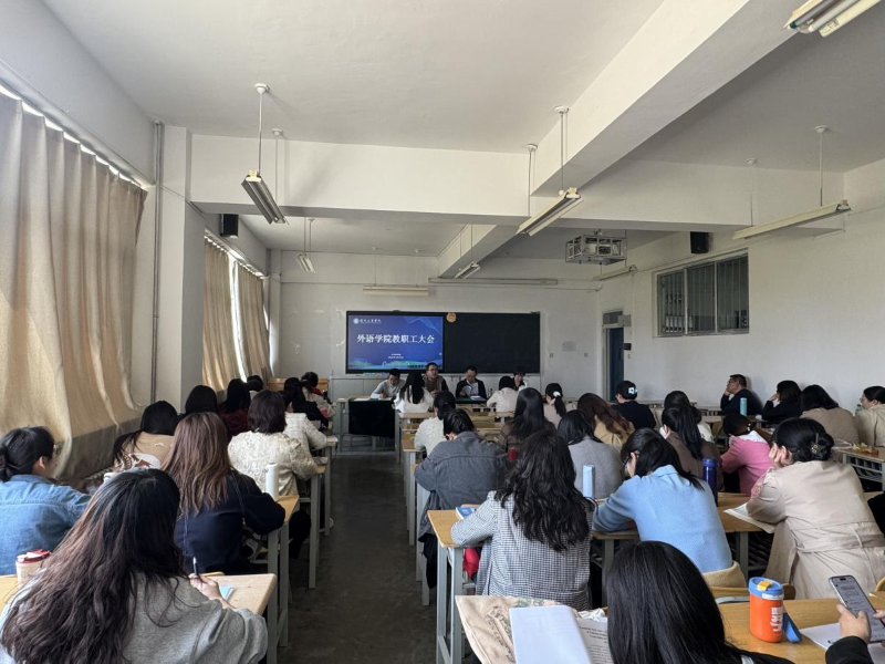 随后,教学院长王谋清教授聚焦教学环节,提出了一系列具体且明确的要求。王院长指出,全体教师要提升政治站位,充分认识到本科教学工作合格评估对外语学院发展的关键意义,以高度的责任感与使命感投入到迎评工作中。在日常教学里,教师们需精心打磨每一堂课,结合外语学科特点与学生实际需求,优化课堂教学设计。此外,王院长强调要通过多样化的教学手段,增强课堂的互动性,提高学生的课堂参与度,实现学生出勤率、抬头率率和前排就座率的显著提升,切实增强外语课堂的教学质量,从而提高人才培养质量。
