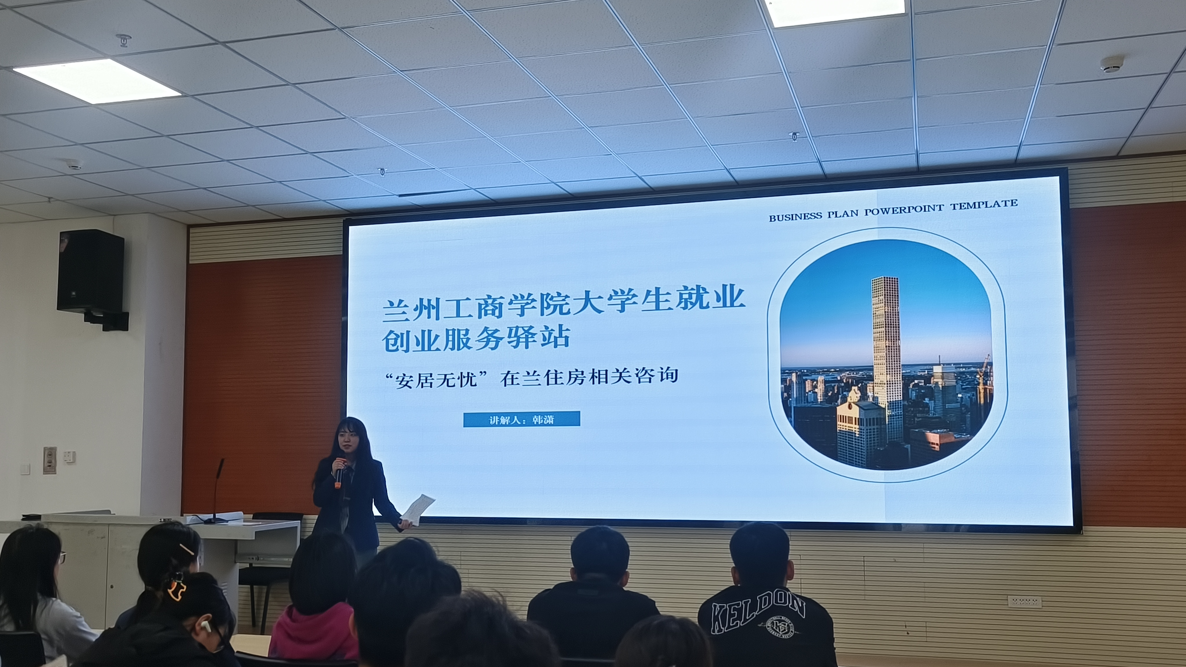 活动紧扣“家雁回巢”“赋能就业”服务品牌建设目标,聚焦毕业生留兰就业创业政策和职业发展规划等热点问题。现场气氛热烈,同学们积极互动。王成副主任结合《兰州市大学生留兰倍增计划操作指南》,用通俗易懂的语言,系统讲解了兰州市为吸引大学生留兰而推出的一系列优惠政策,包括社保补贴、公积金补贴、就业见习补贴以及毕业生在兰创业的扶持政策等,并鼓励大学生积极把握机遇,留兰发展,共创美好未来。韩潇主任则围绕“安居无忧”毕业生留兰住房政策进行了详细解读,为毕业生在兰州安居乐业提供了清晰的指引。