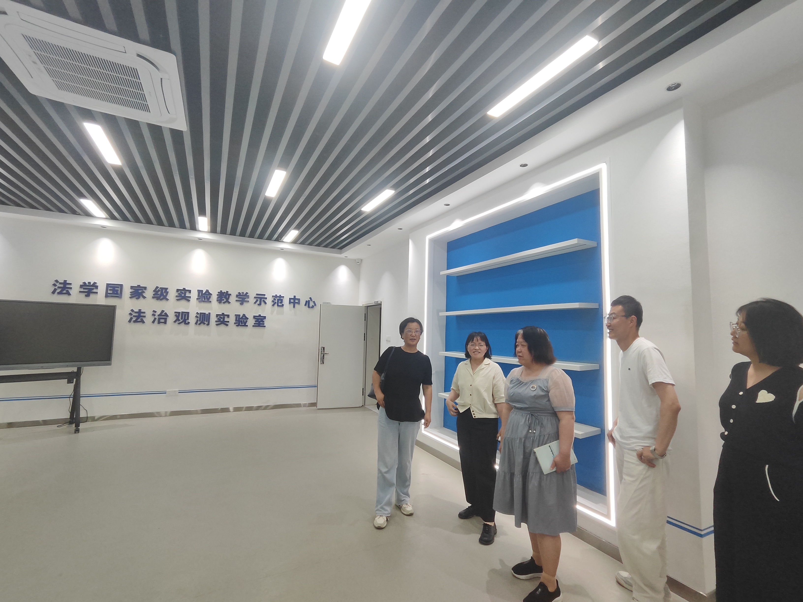 为推进法学教育数字化转型、探索智慧实验室建设路径、促进法学教育资源共享与校际合作,深化实践教学改革创新。法学院教师李毅、黄佳、马可可与兰州大学法学院副院长杨雅妮教授于5月17日前往中南财经政法大学法学实验中心调研学习。中南财经政法大学法学实验教学中心秘书长邓晓静副教授、法学实验教学中心高级实验师方玉珍老师热情接待。