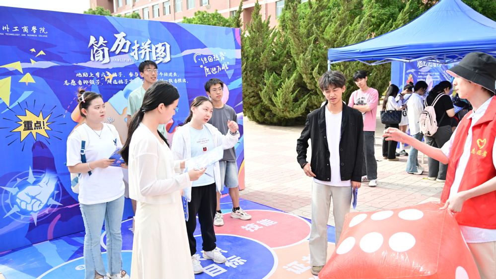 启动仪式后,首场“生涯探索市集” 在学校喷泉广场开展,设置了“生涯唤醒” 等主题区域,互动关卡及“职业变装秀”“有趣职业工作坊” 特色体验区,学生通过《生涯成长手册》闯关集章,在游戏化机制中完成自我认知到职业决策全链条体验。