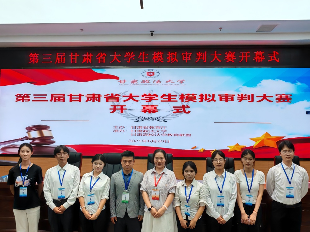 6月20日下午,甘肃省第三届模拟审判大赛在甘肃政法大学隆重举办,法学院由宋蕾老师带队,李芸莉等八名学生参赛,并顺利完成所有赛程。