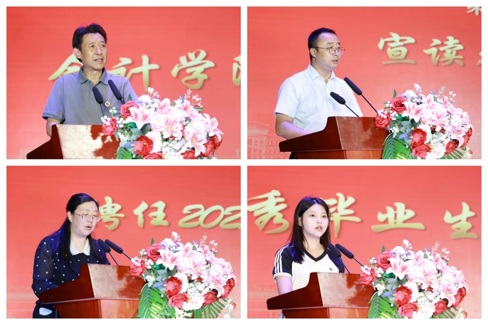 优秀毕业生代表黄佳同学分享了在兰州工商学院会计学专业的求学成长历程,深切表达对学校培养和师长教诲的感恩之情。数智会计教研室主任李小龙副教授作为教师代表,结合自身经历为毕业生送上专业发展建议与人生寄语。