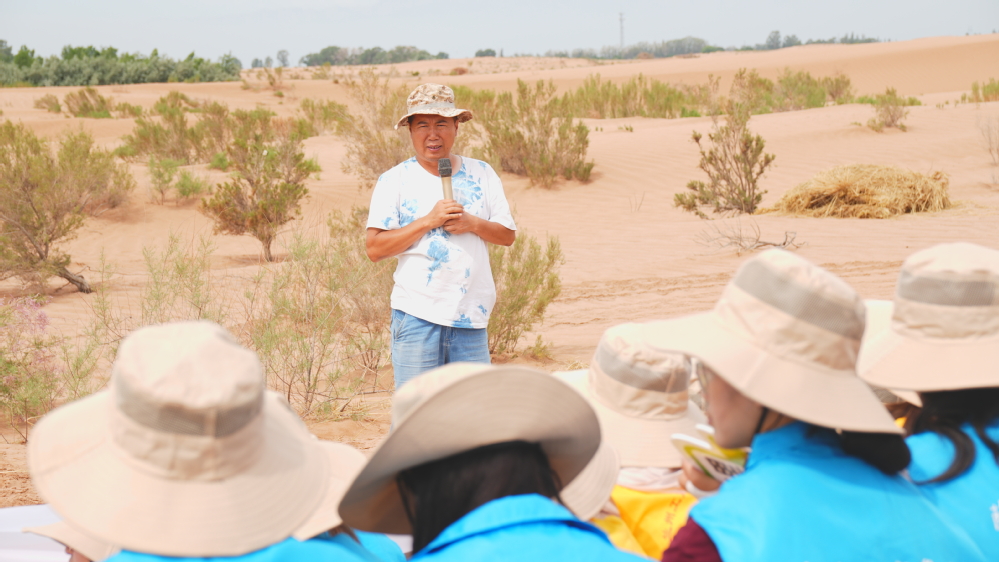 活动特别设置了“治沙人故事会”,邀请全国绿化劳动模范、甘肃省劳动模范马俊河讲述了河西走廊地区荒漠化的自然成因与人为因素,并结合三代治沙人扎根荒漠的奋斗历程,诠释了“困难面前不低头、敢把沙漠变绿洲”的民勤精神。师生们围坐在沙漠中,聆听这些平凡而伟大的故事,深刻感悟到劳动精神的时代价值与现实意义。