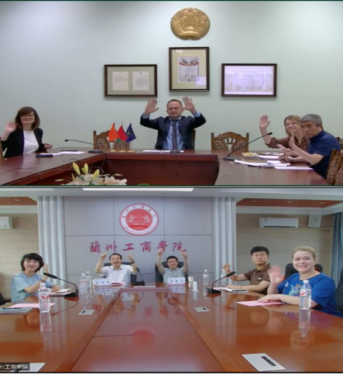 7月10日,兰州工商学院与白俄罗斯格罗德诺扬卡·库帕拉国立大学召开线上交流会。白俄罗斯格大第一副校长卡列夫斯基·亚历山大·叶夫根尼耶维奇、教育国际化中心主任别尔科兹·叶莲娜·约瑟夫娜、国际合作处处长米诺娃·奥尔加·瓦西里耶夫娜及翻译王涛(跨文化交际系高级讲师),甘肃省联合国教科文组织协会秘书长严智、外籍专家Savina Viktoryia(维多利亚),学校校长王华栋、教学常务副校长宿光平及国际合作交流办公室全体工作人员参加会议。